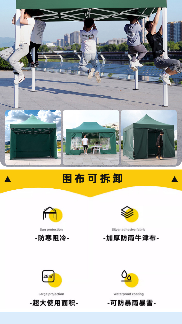 thickened automatic rack 3x4+3 sides protection cloth dark green [protection cloth detachable windproof and water resistant]]