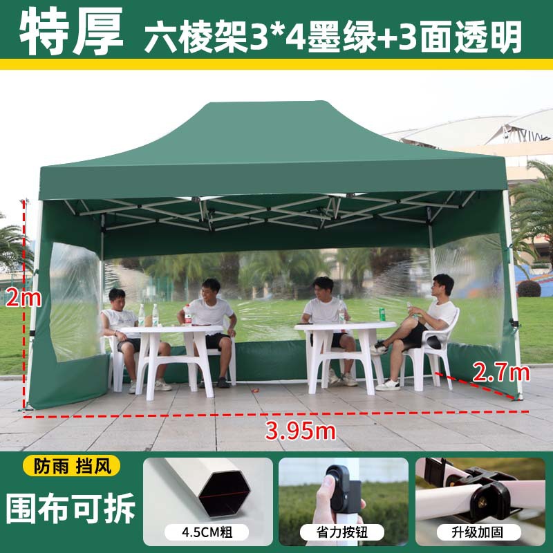 thickened automatic rack 3x4+4 sides protection cloth dark green [protection cloth detachable windproof and water resistant]]