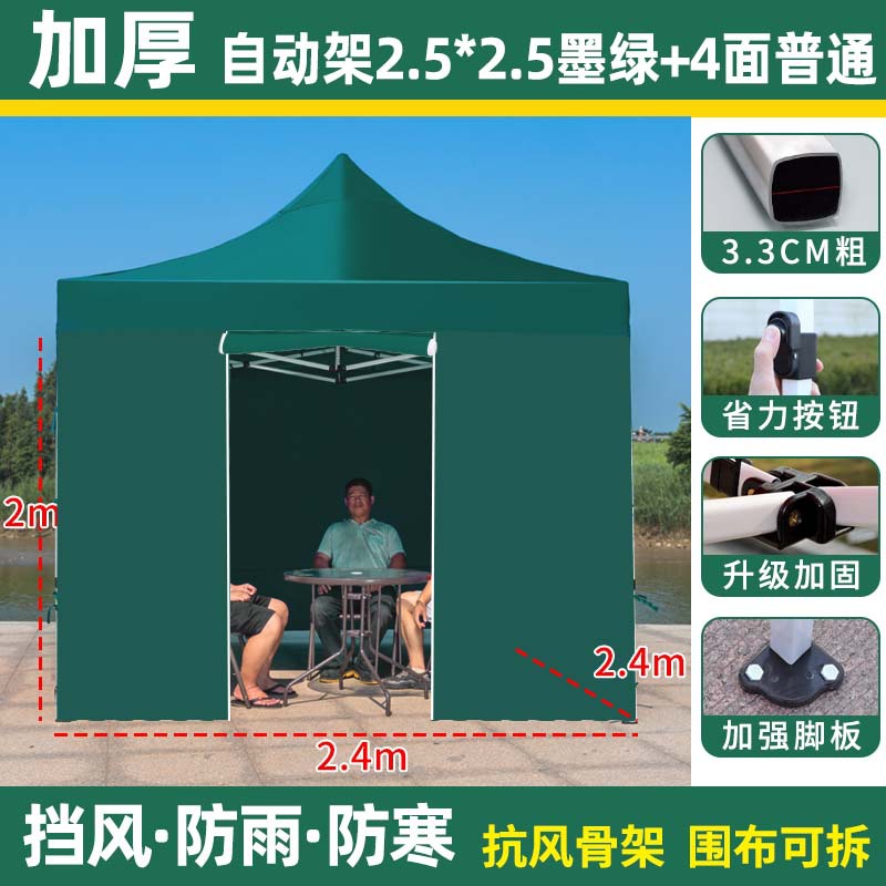 thickened automatic rack 2.5 x2.5 +4 sides protection cloth dark green [protection cloth detachable windproof and water resistant]]