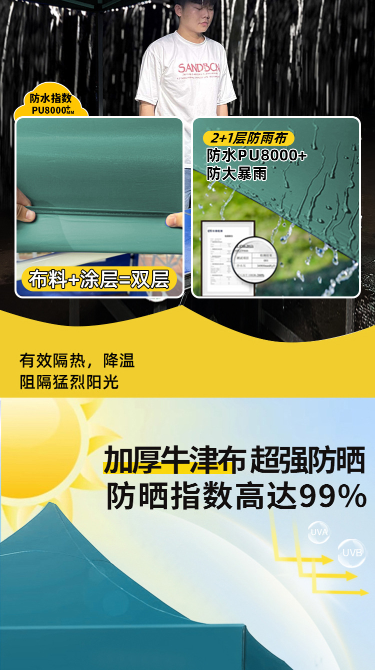 thickened automatic rack 2x2+3 sides protection cloth dark green [protection cloth detachable windproof and water resistant]]
