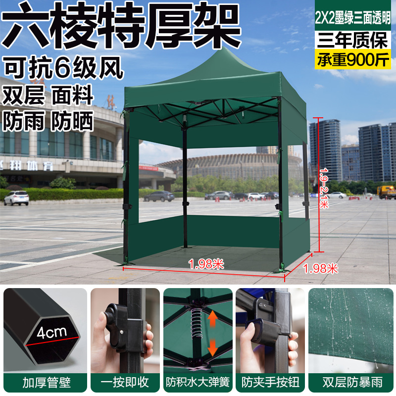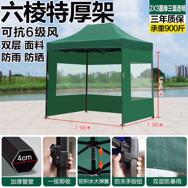 extra-thick black hexagonal 3x3 dark green +3 transparent sides [rainproof, windproof, cold-resistant]