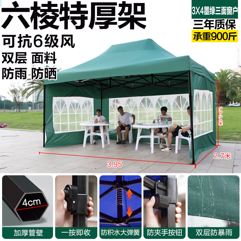extra-thick black hexagonal 3x4 green +3 windows [rainproof, windproof, cold-resistant]