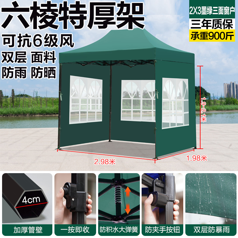 extra-thick black hexagonal 3x3 dark green model with windows on three sides [rainproof, windproof, and cold-resistant]