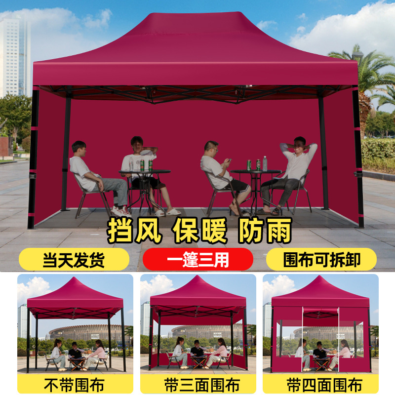 extra-thick black hexagon 3x3 burgundy + 4-sided protection cloth [rainproof, windproof, cold-resistant]