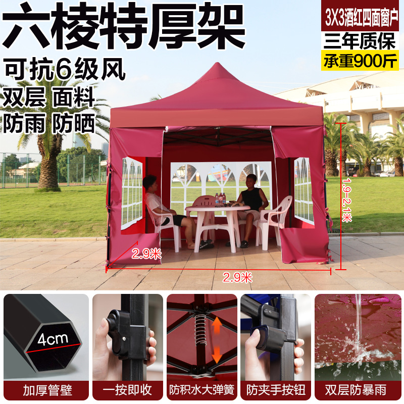extra-thick black hexagonal 3x3 wine red with 3 windowed sides [rainproof, windproof, and cold-resistant]