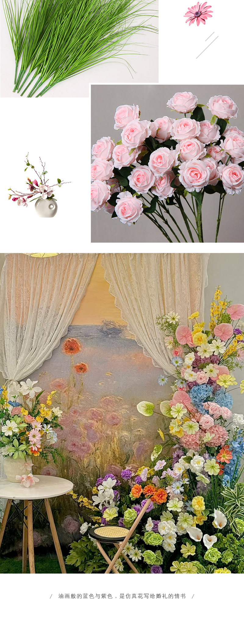 oil painting purple single head cream rose/piece