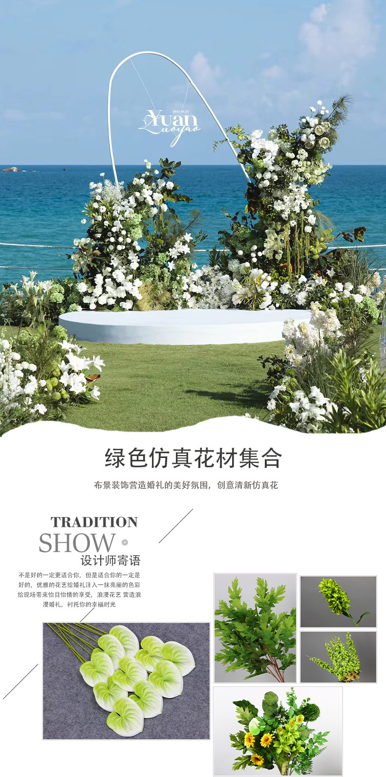 green 3 side flowers/piece