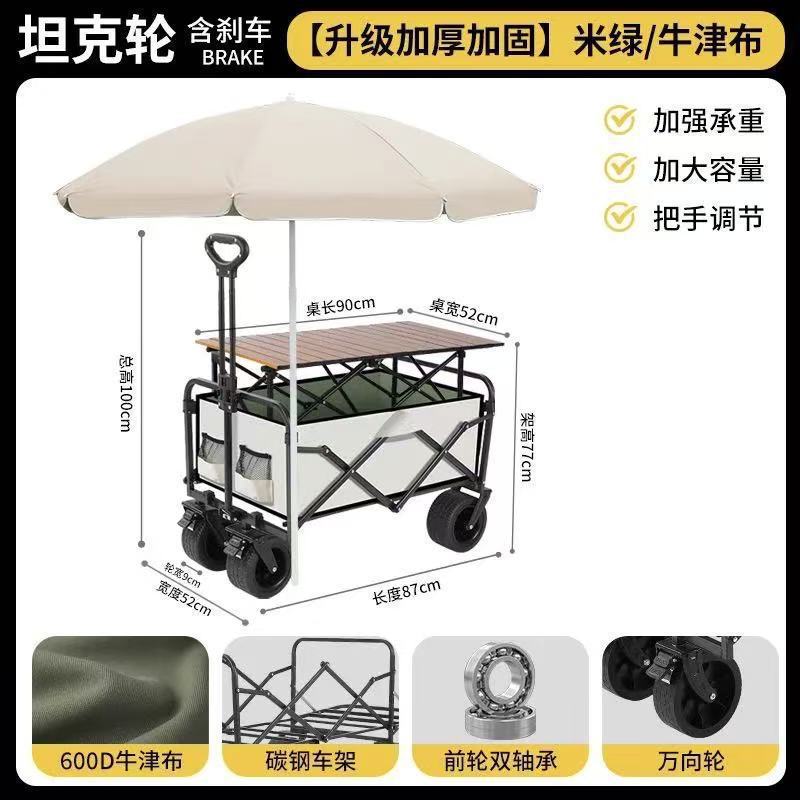 campervan + folding stall table-large off-road wheel with brake (beige green)