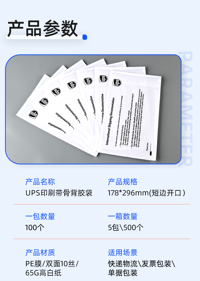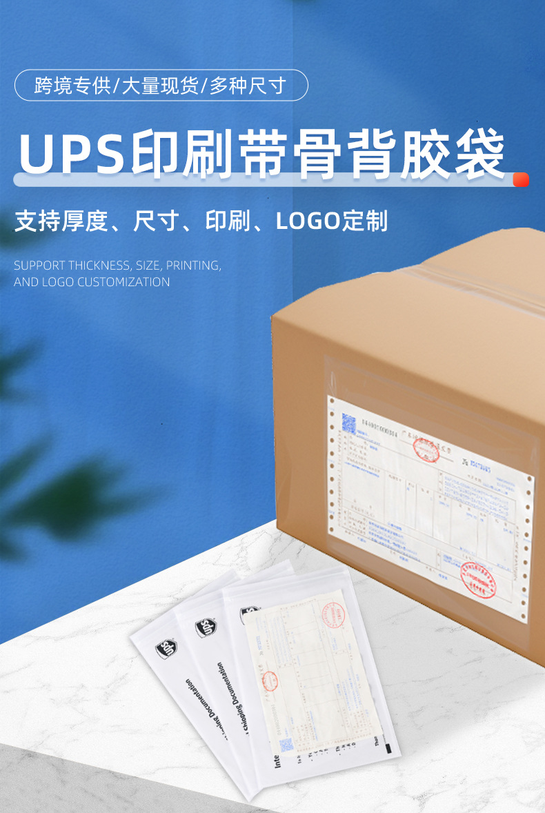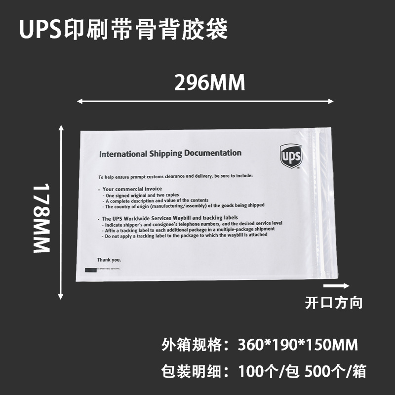 ups printed ribbed backing bag; 178*296mm/short side opening