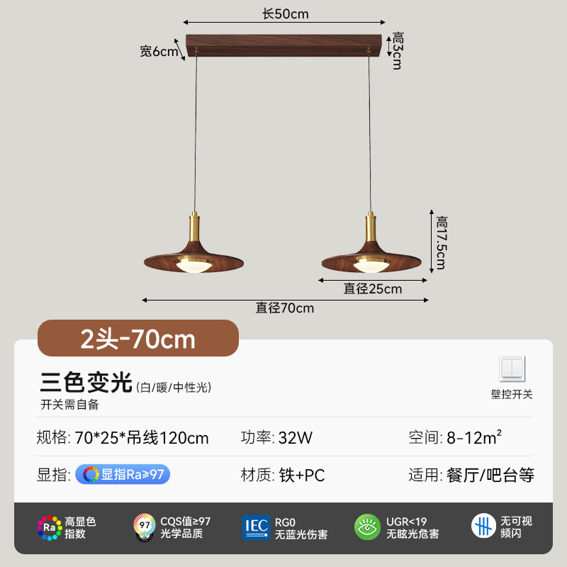 [5-head dining crane walnut colors] l110 * w20cm-70w full spectrum three-color light