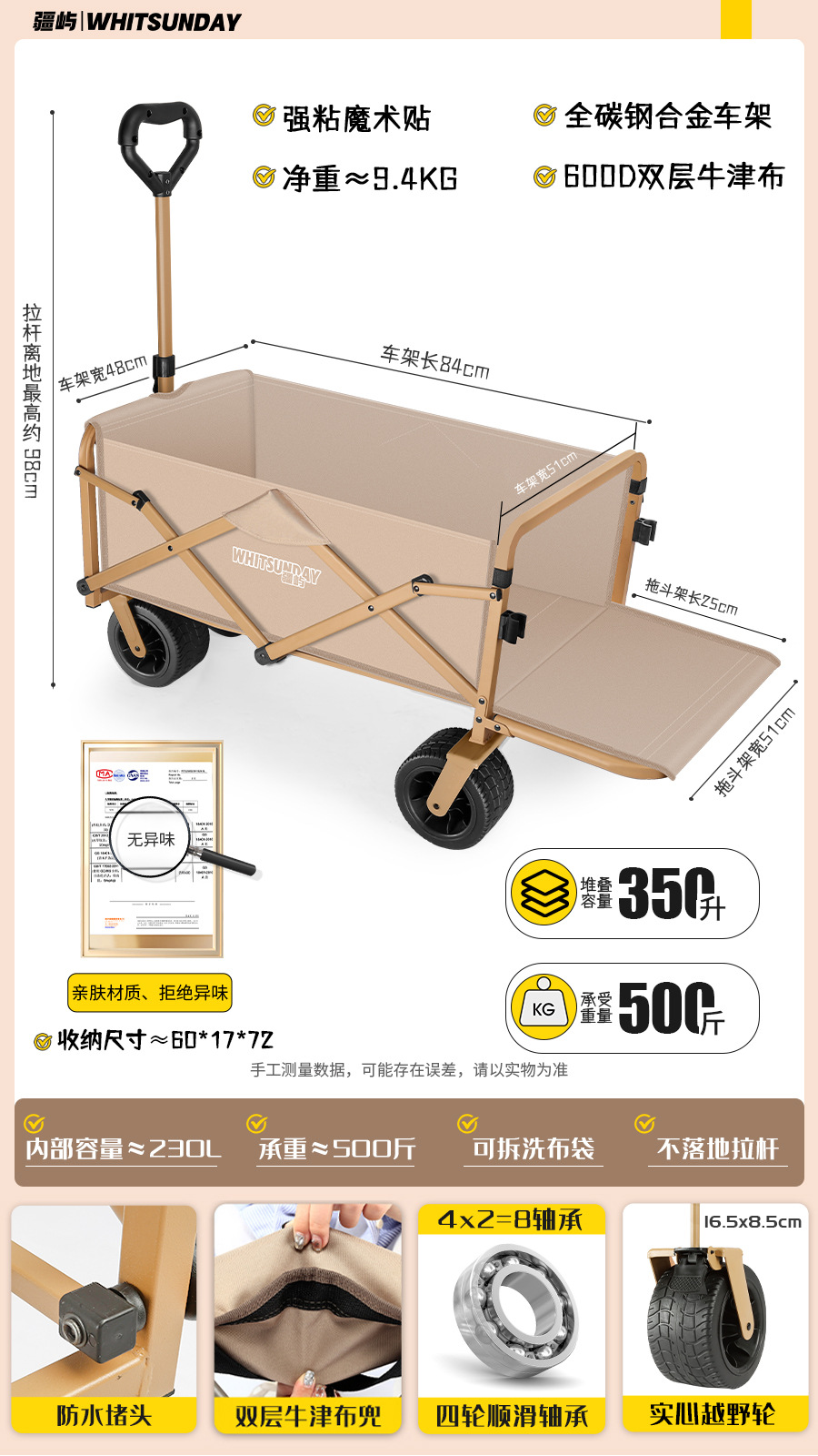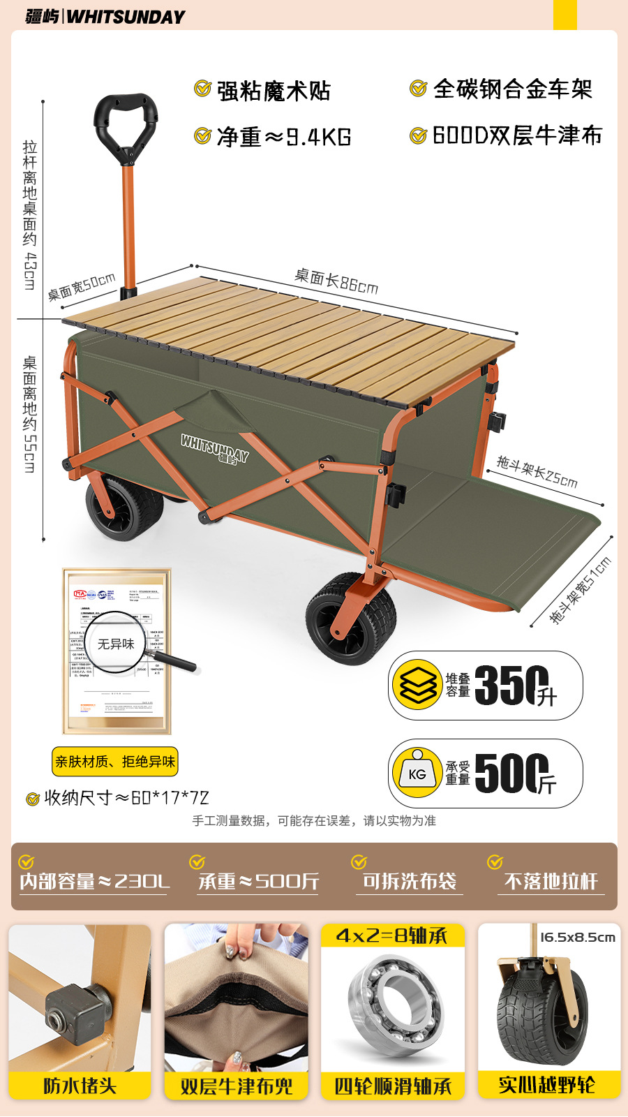 large [khaki] aircraft wheel + double brake off-road wheel [trailer rear open-all steel frame] + egg roll desktop + sunshade