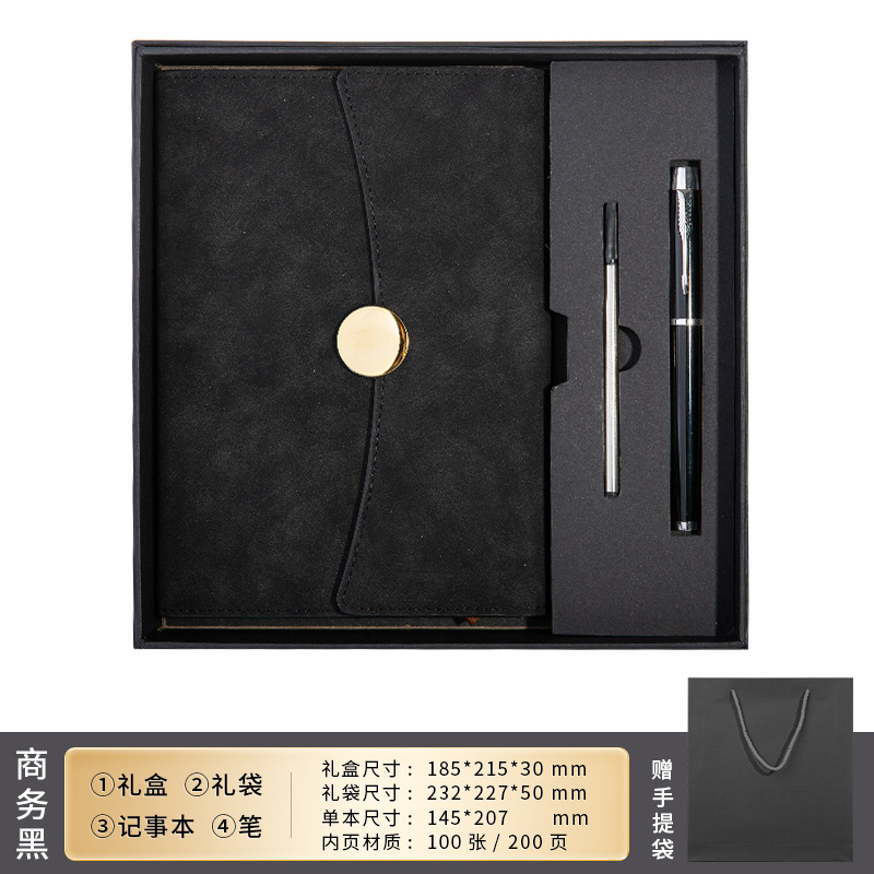 business black [notebook + metal roller pen + gift box]