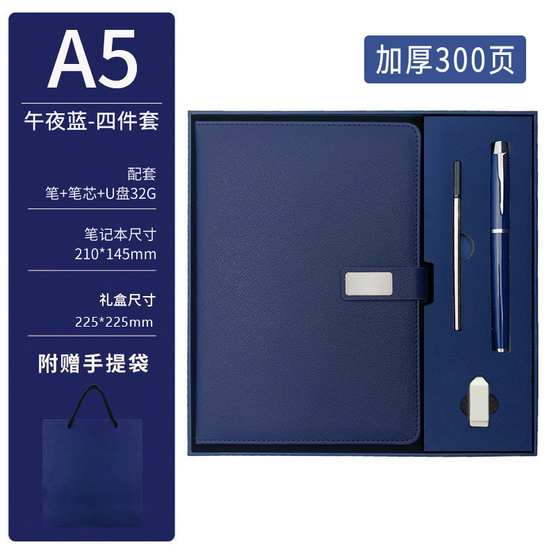 a5 usb flash drive four-piece set, thickened, 300 pages – midnight blue