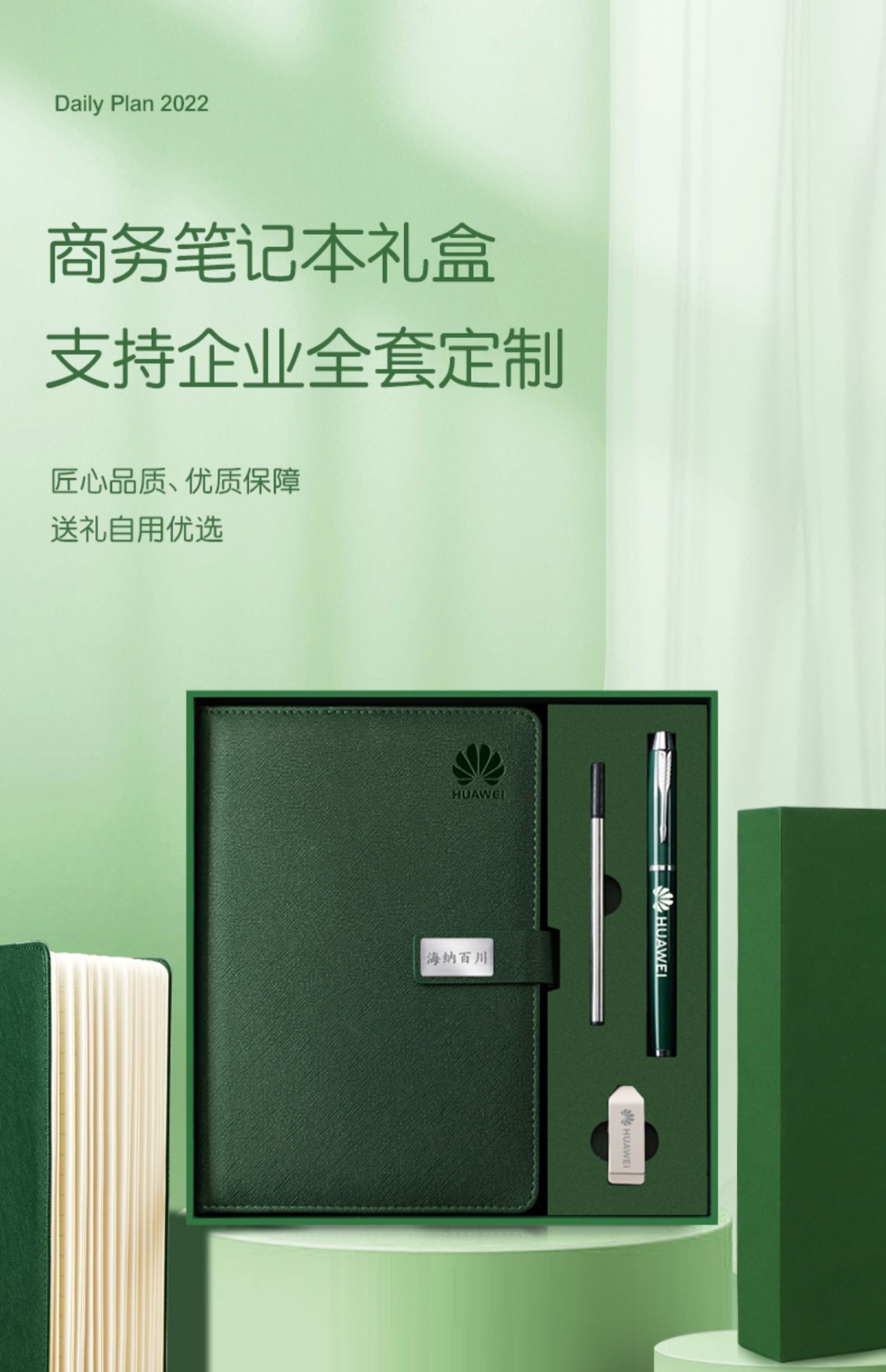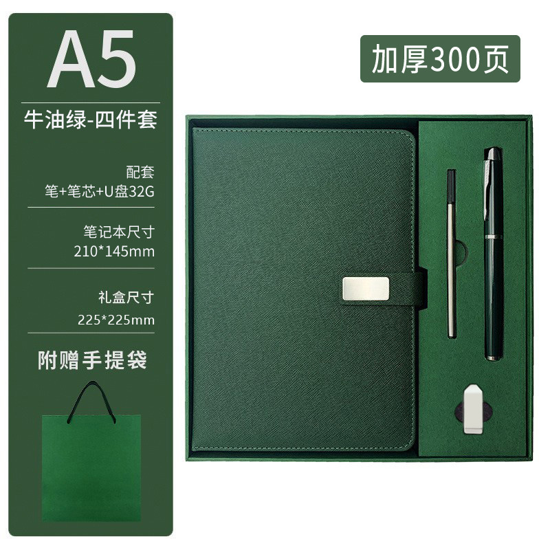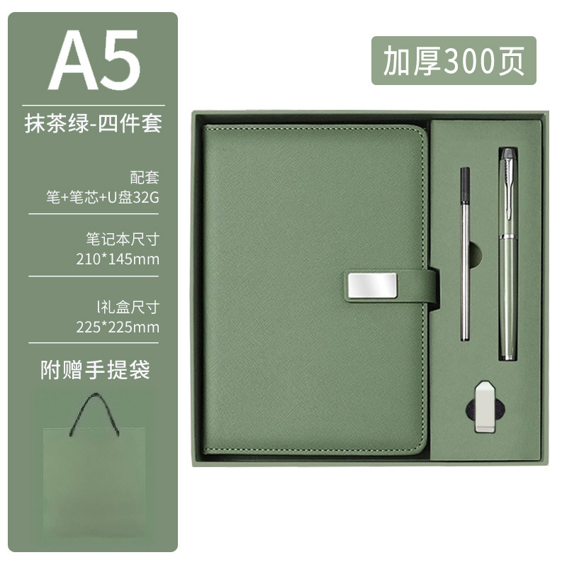 a5 usb flash drive four-piece set, thickened, 300 pages – matcha green