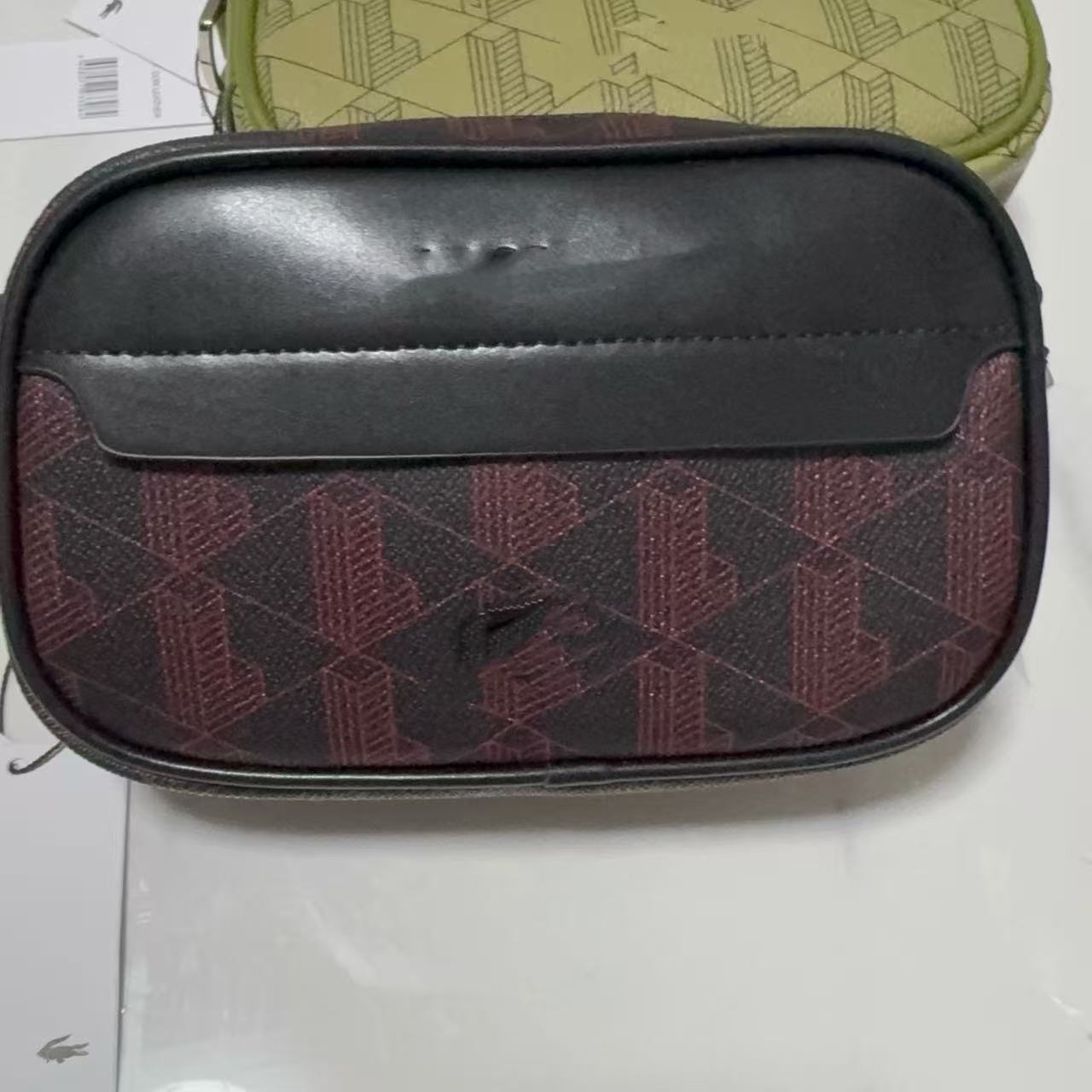 wine red printed camera bag]]