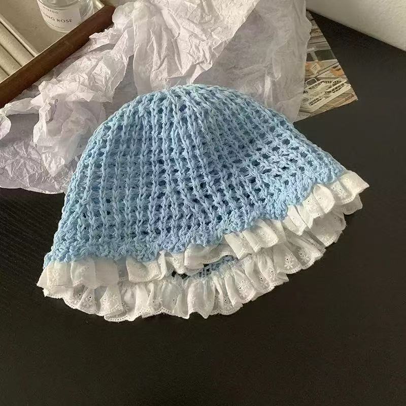 hollow-out dress side bucket hat-blue