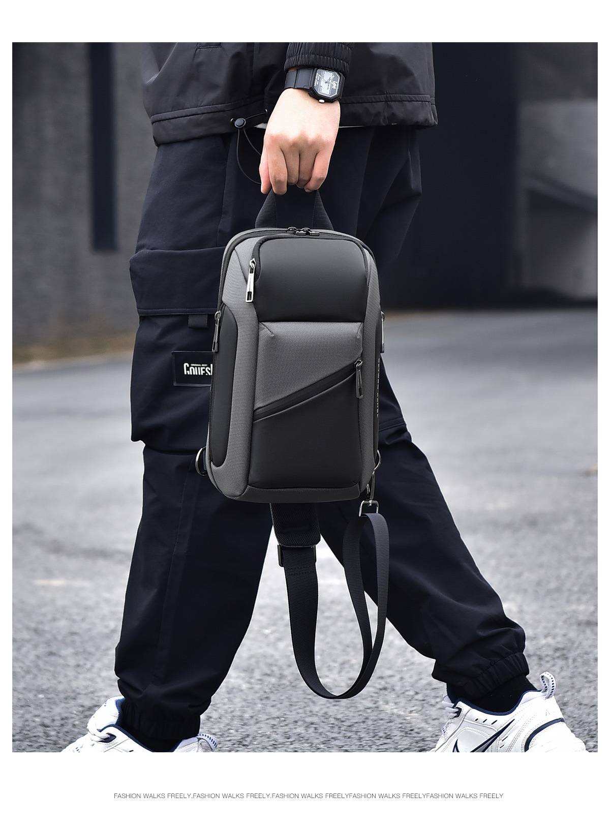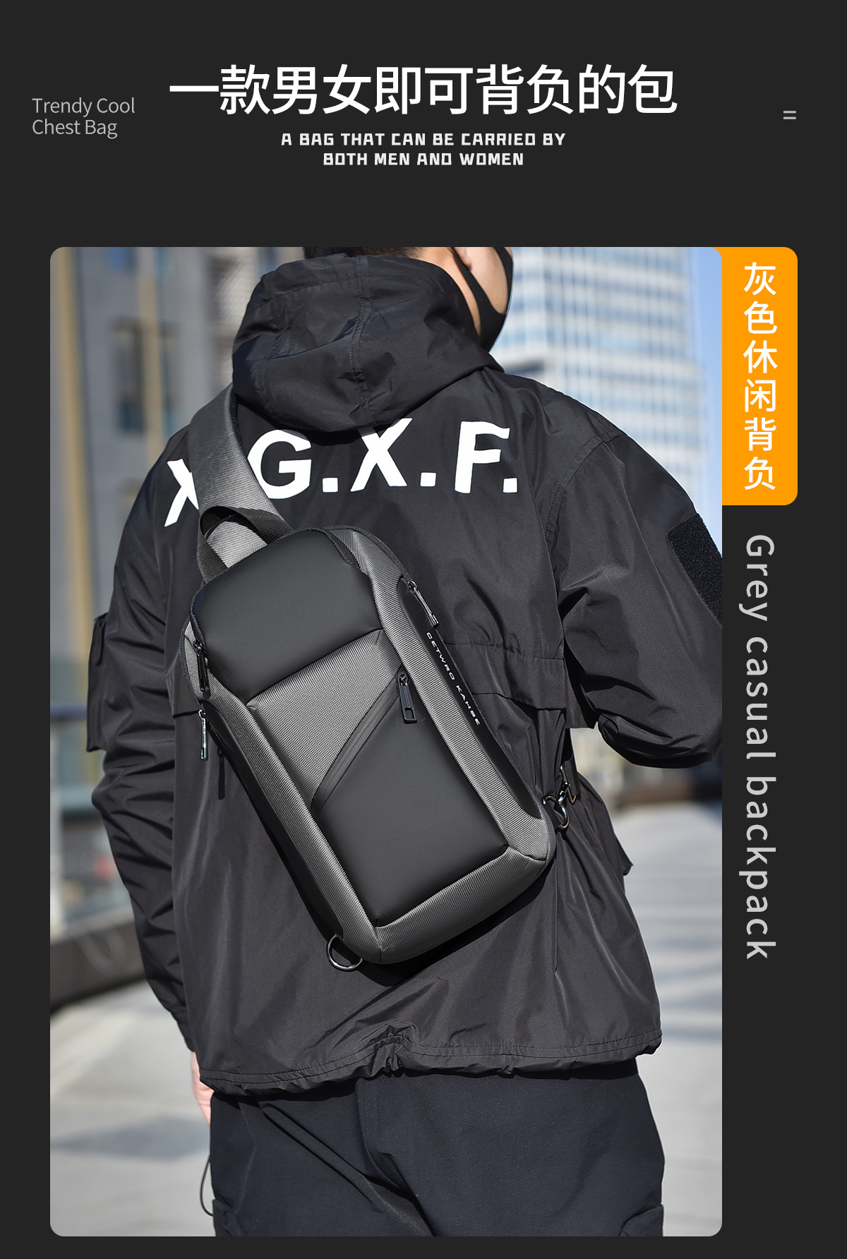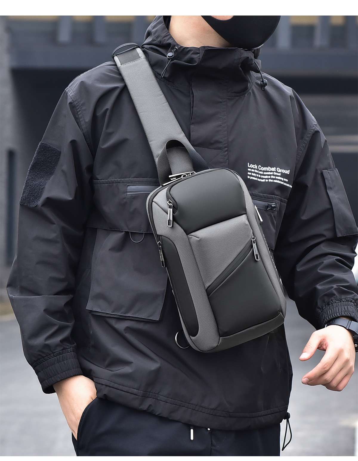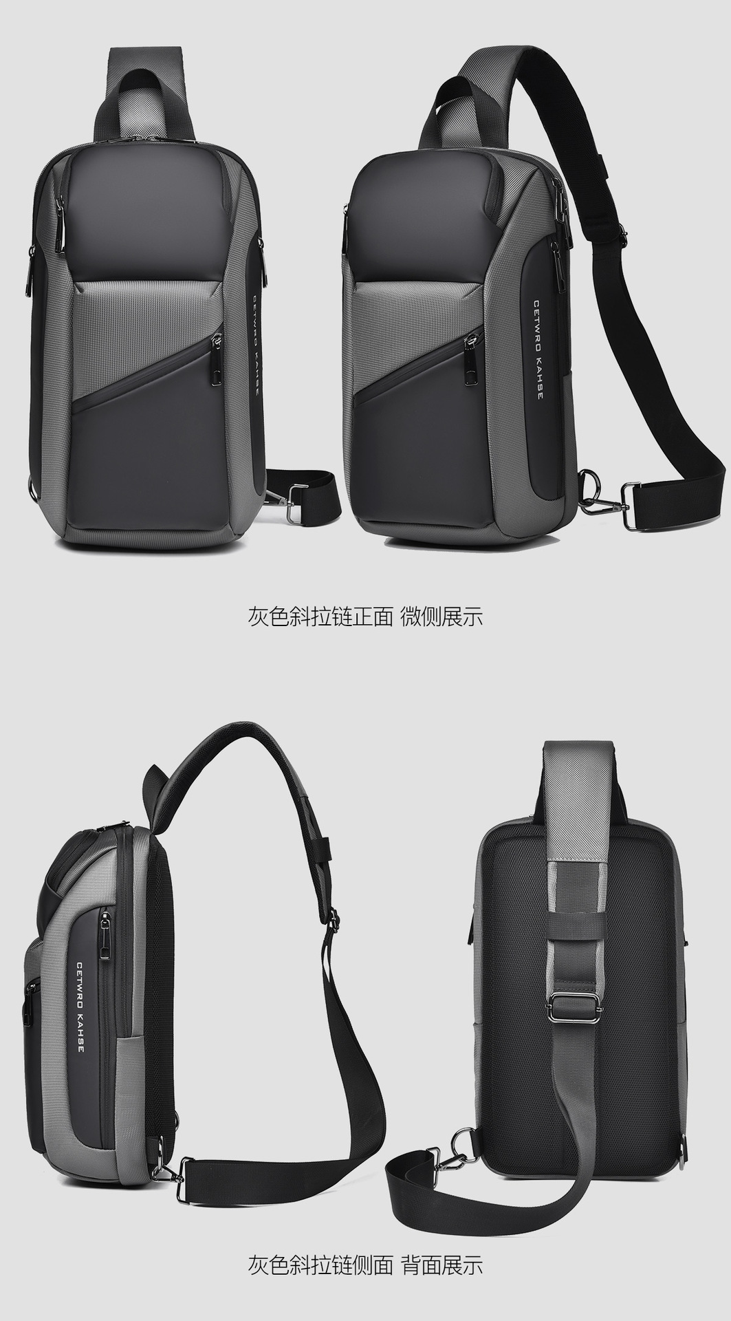 small oblique zipper gray 8658-1