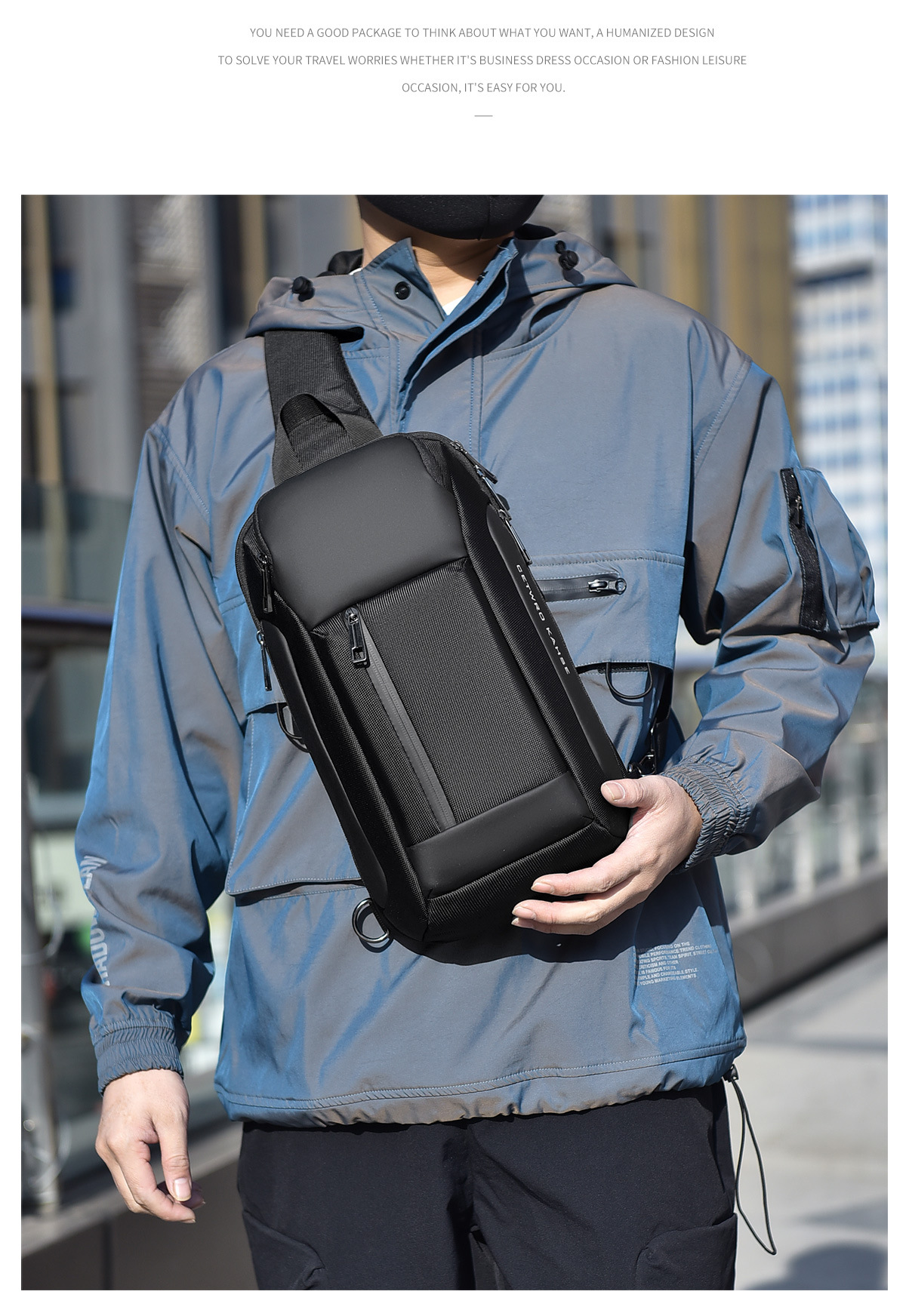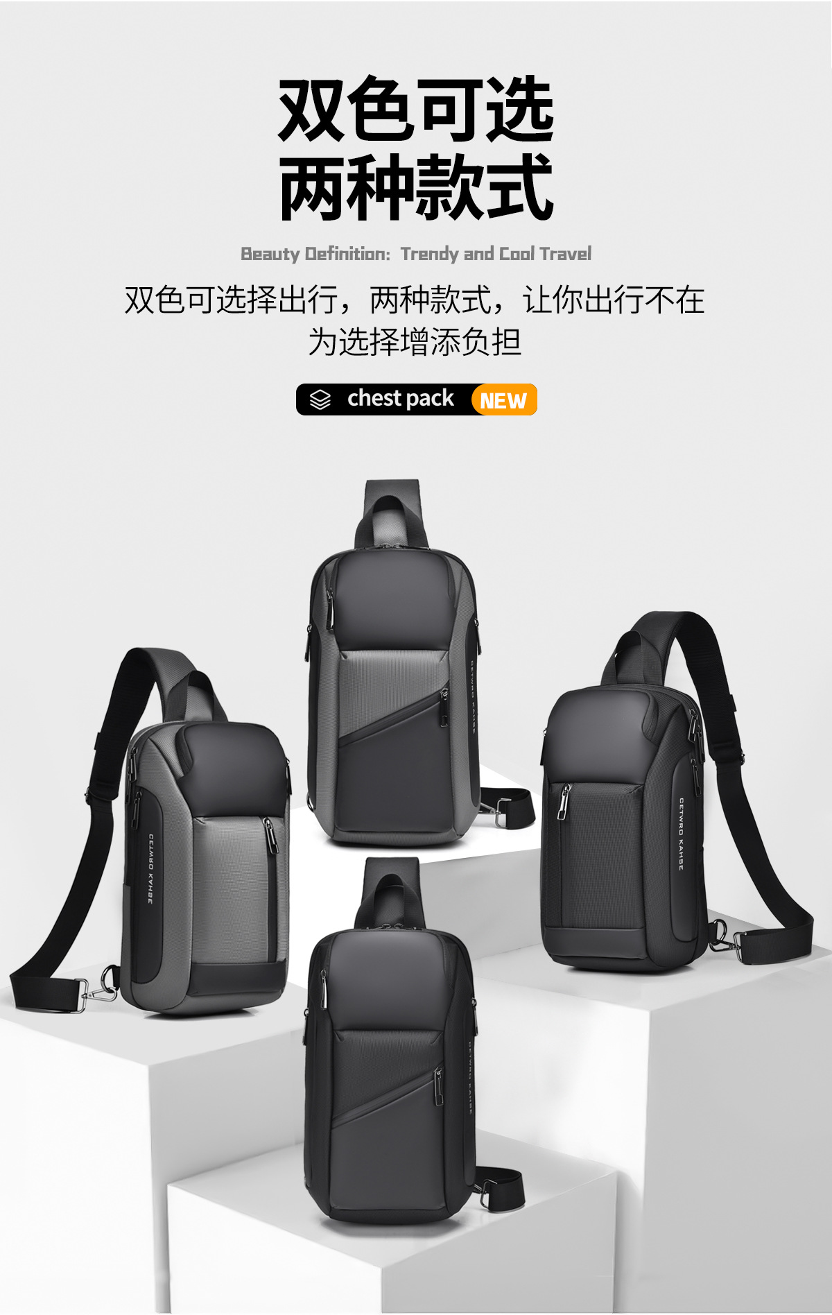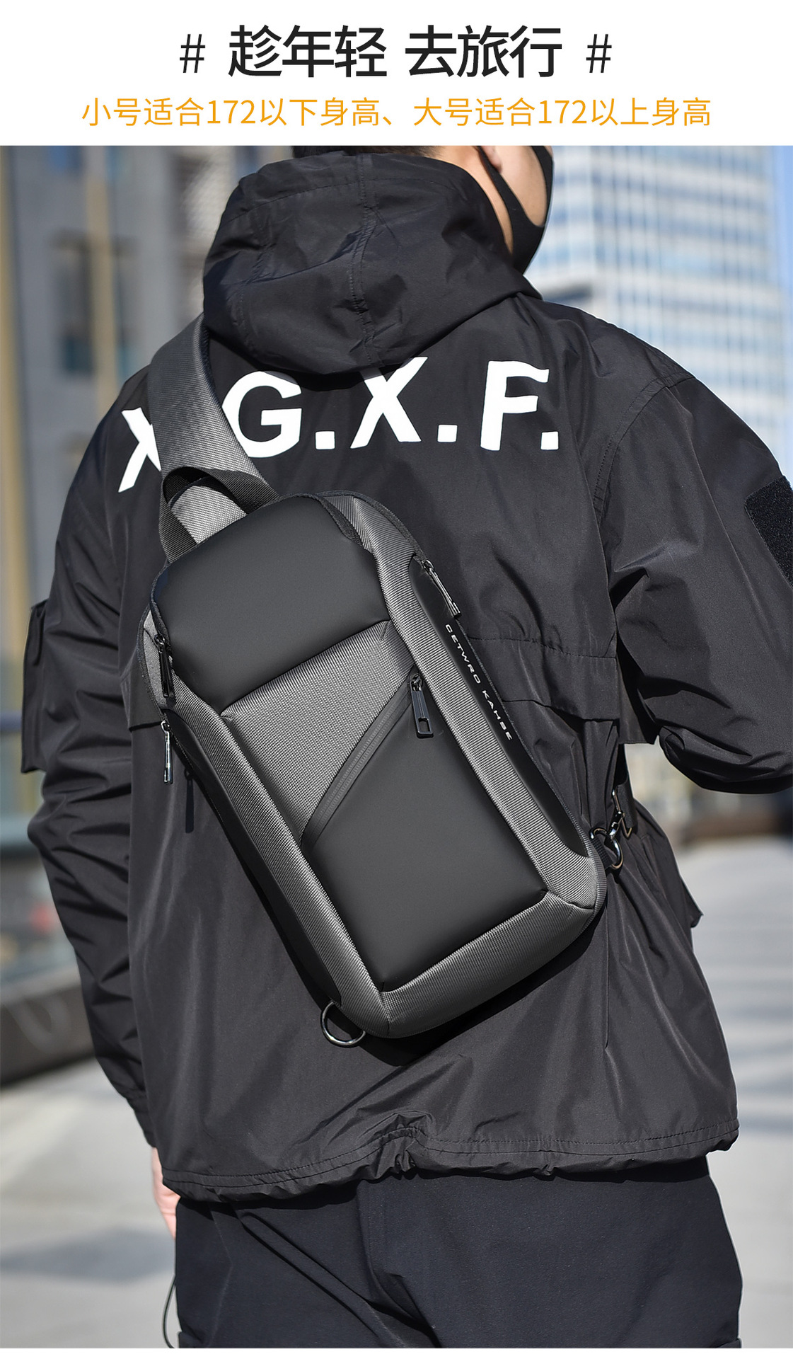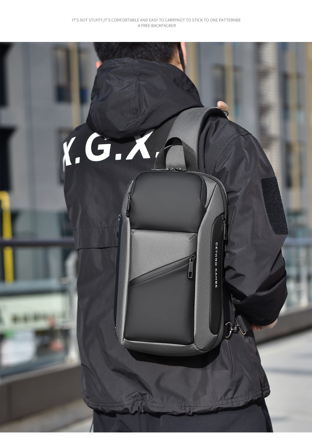 small oblique zipper gray 8658-1