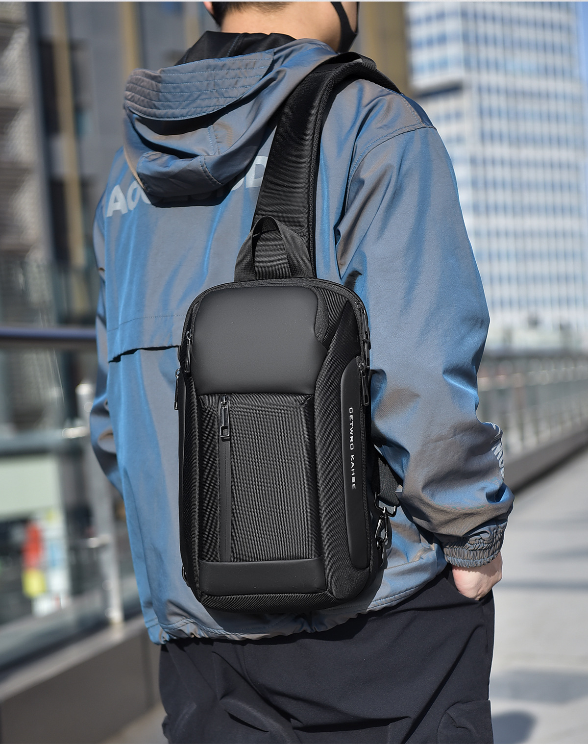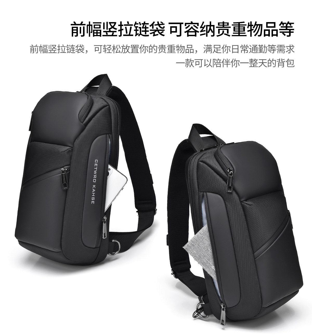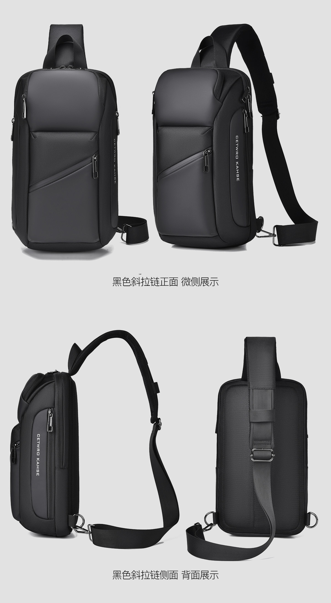 large oblique zipper black 8658-2