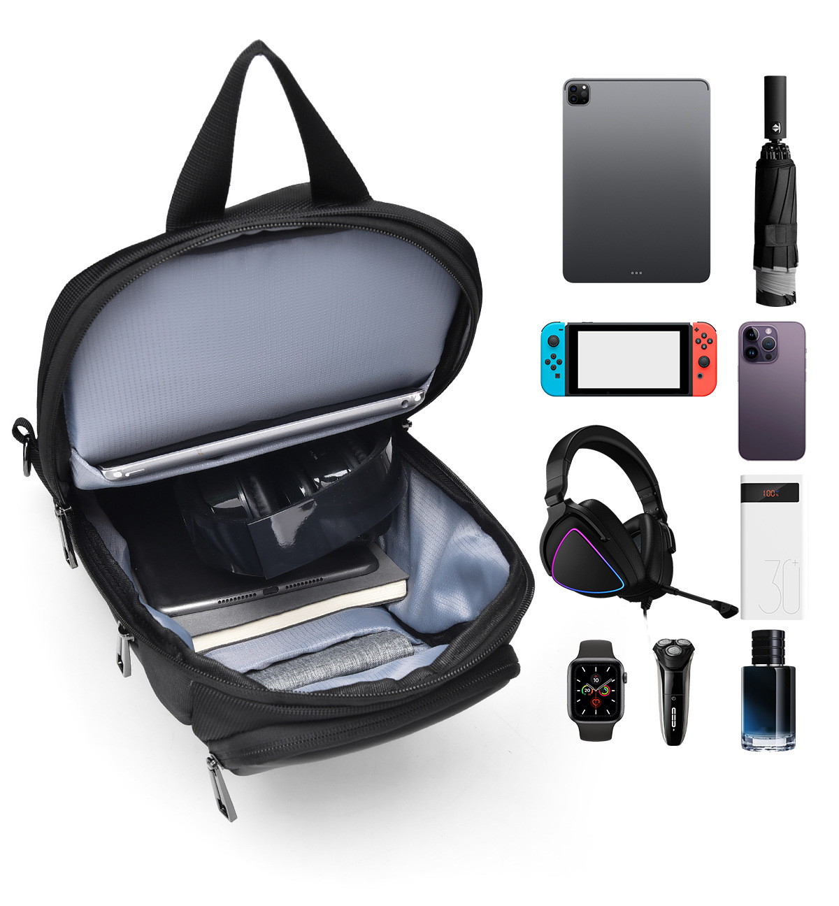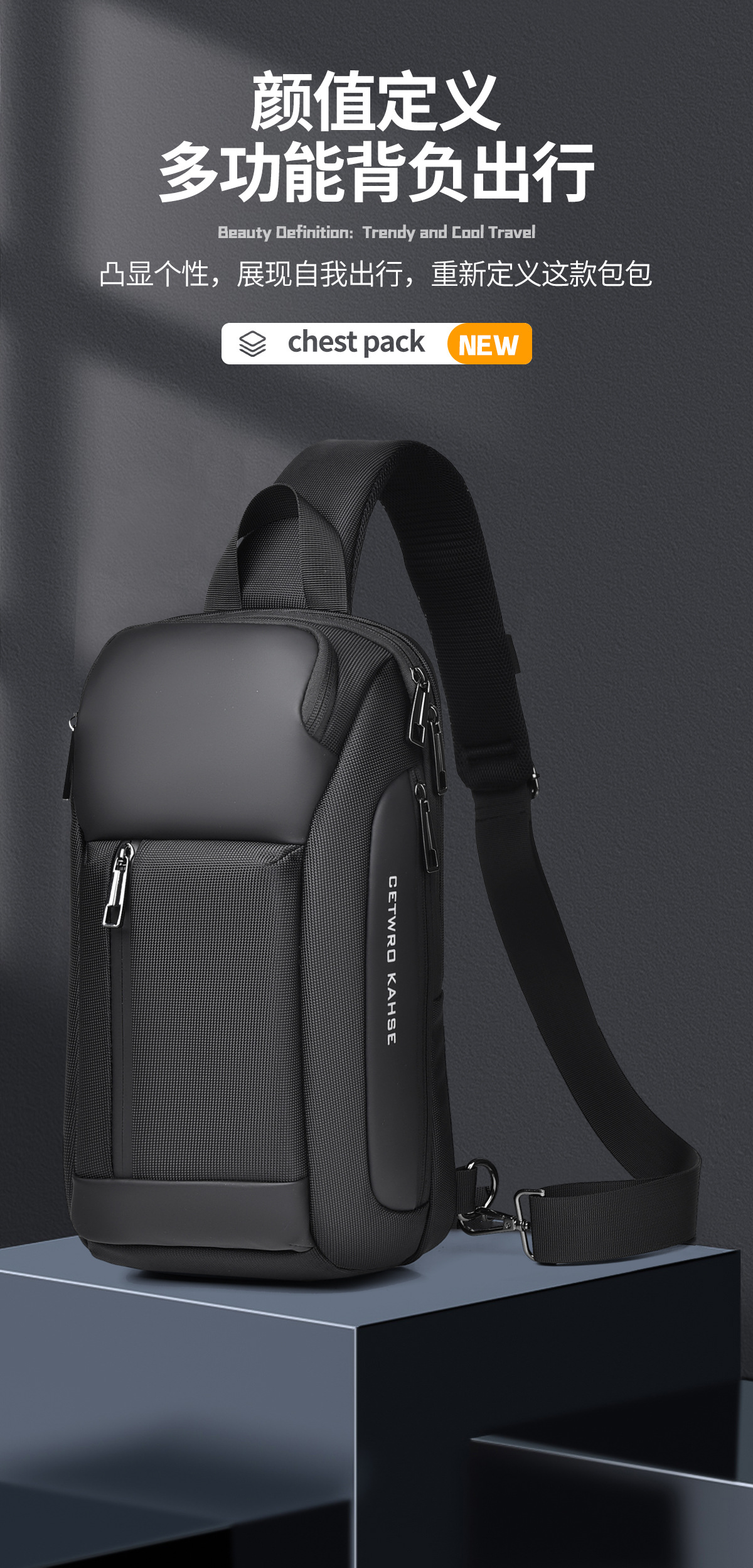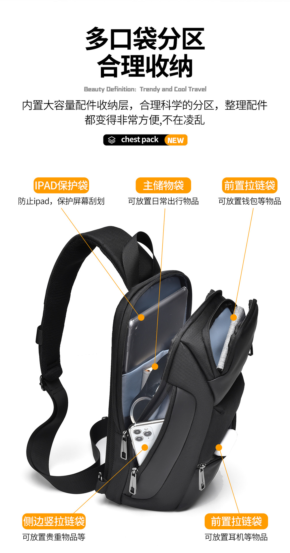 large oblique zipper black 8658-2