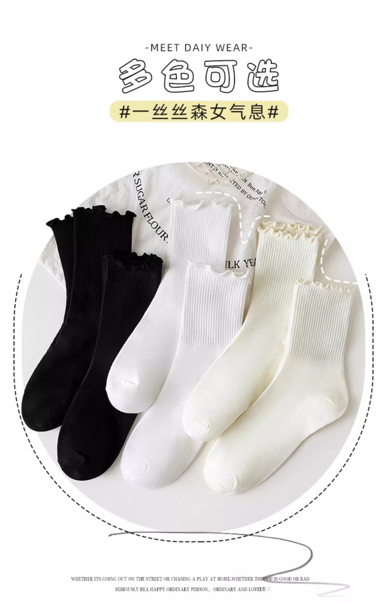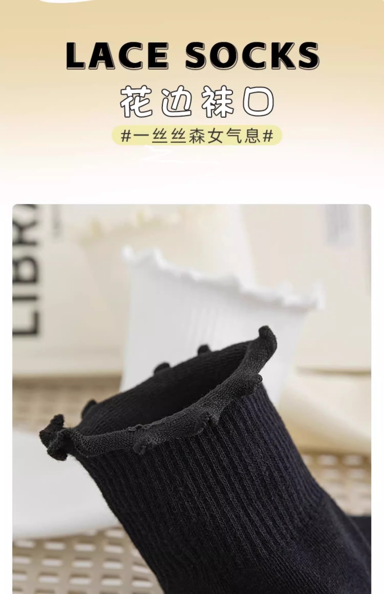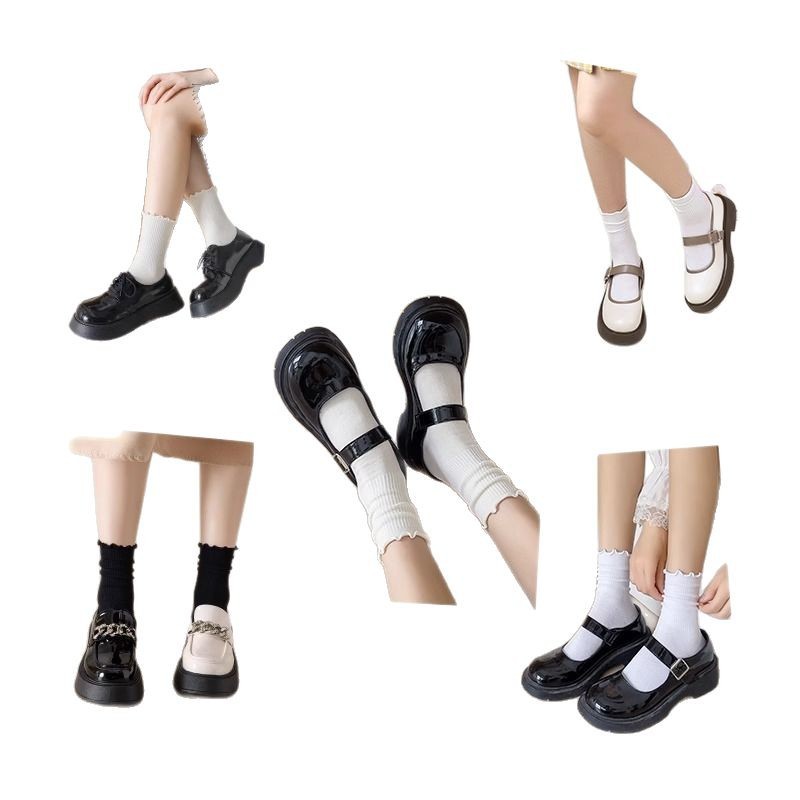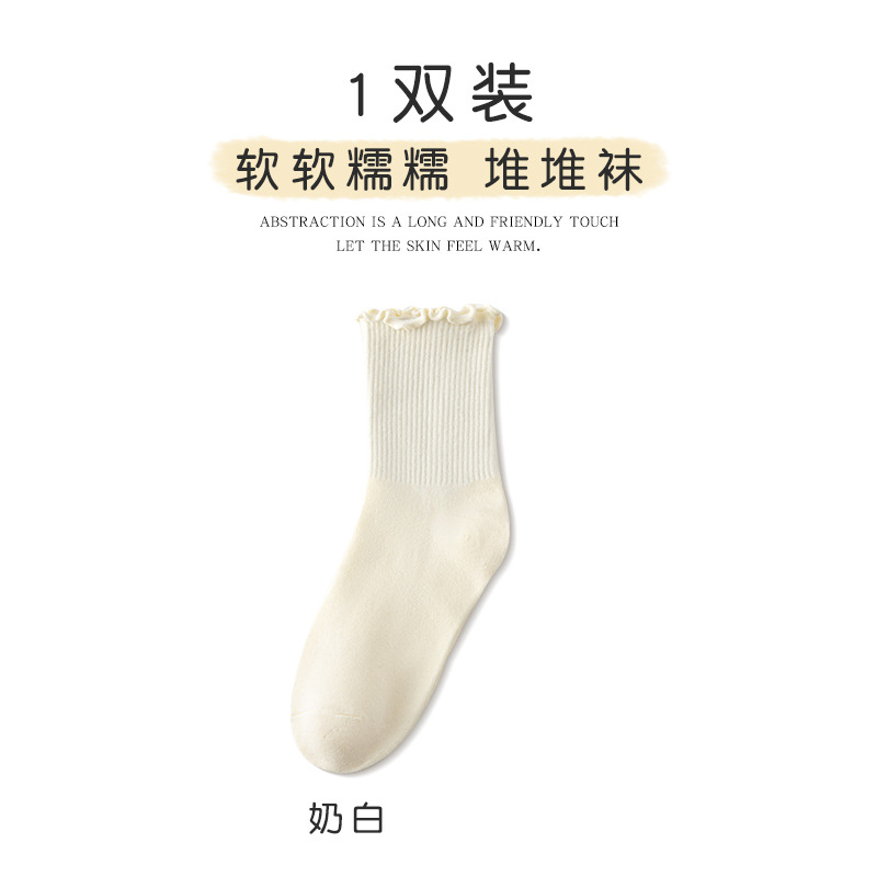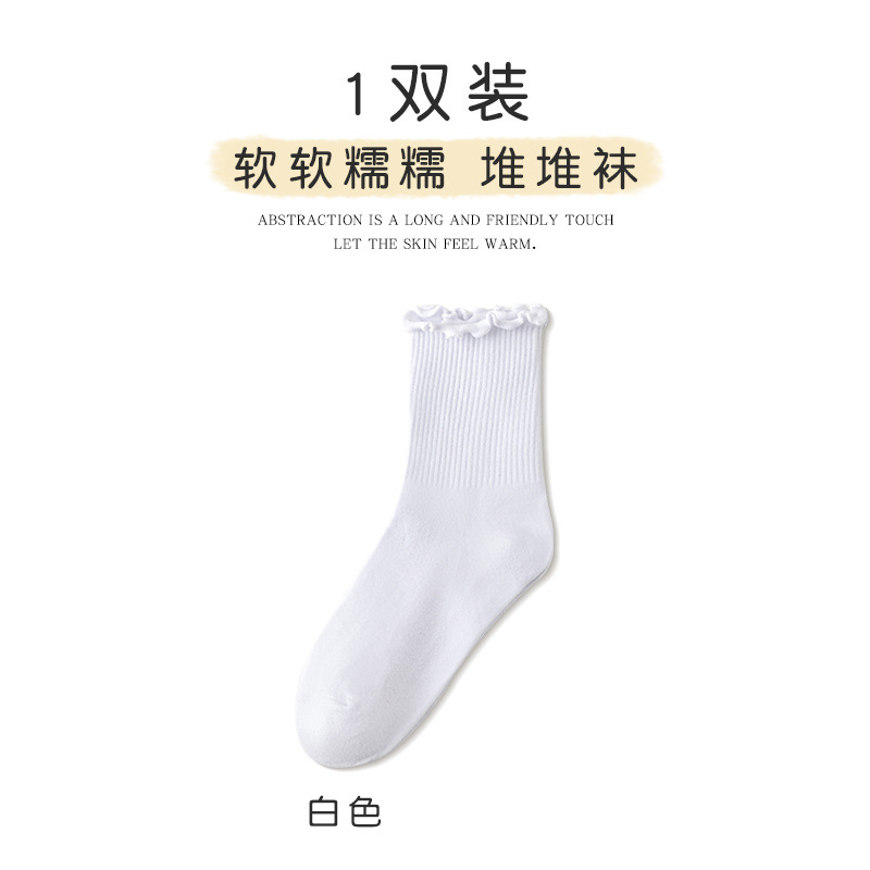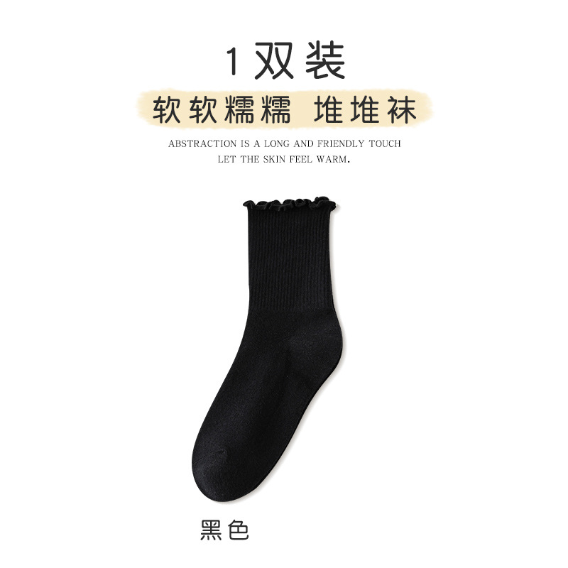 women's socks spring and summer thin wooden ear lace middle tube cotton socks black and white milky white bunching socks japanese style all-matching stockings