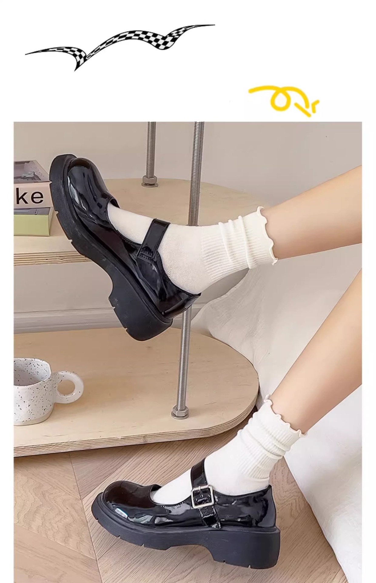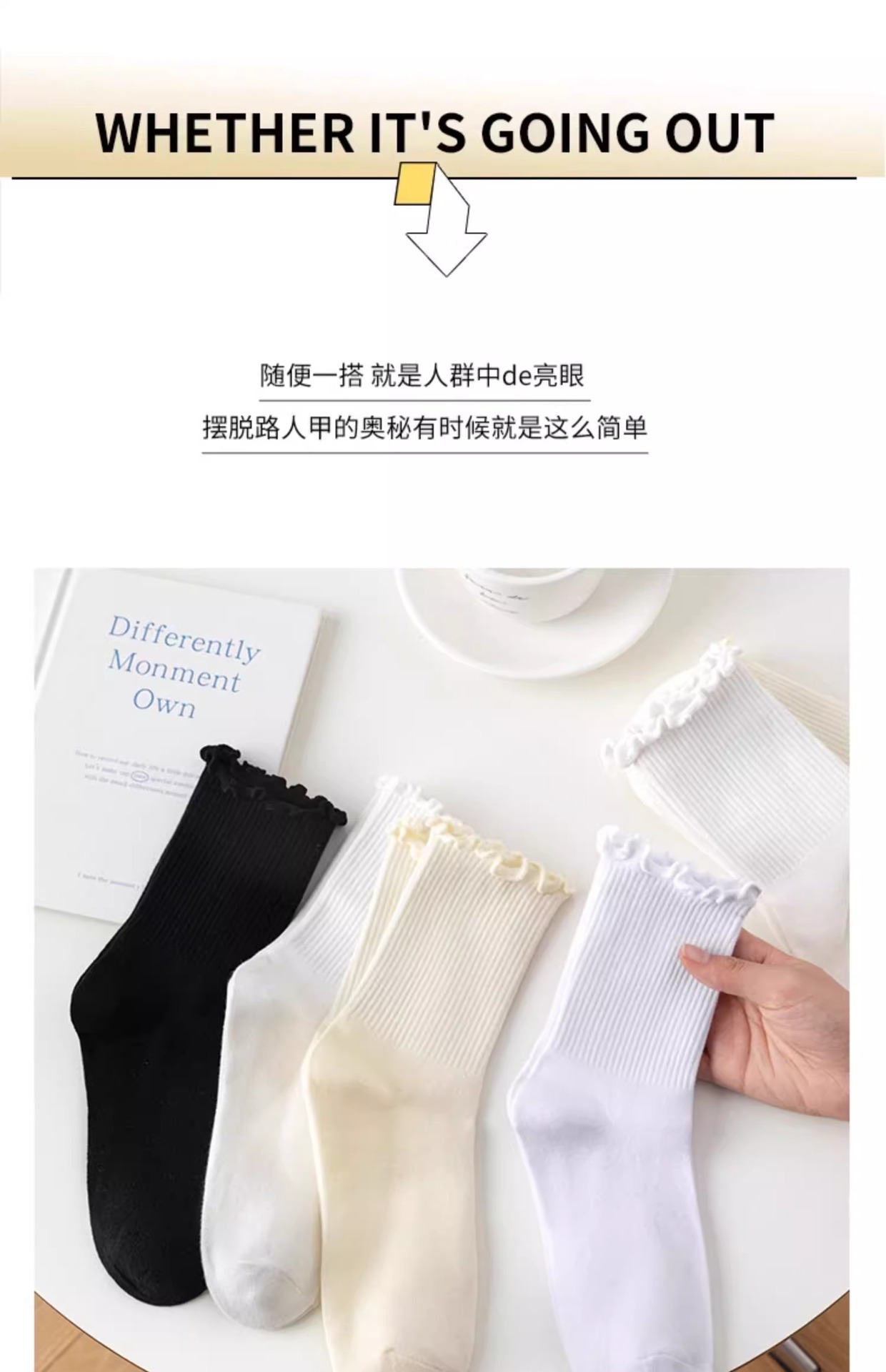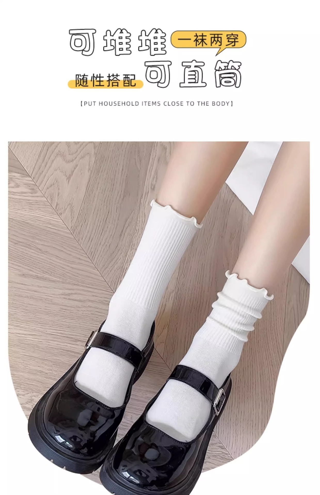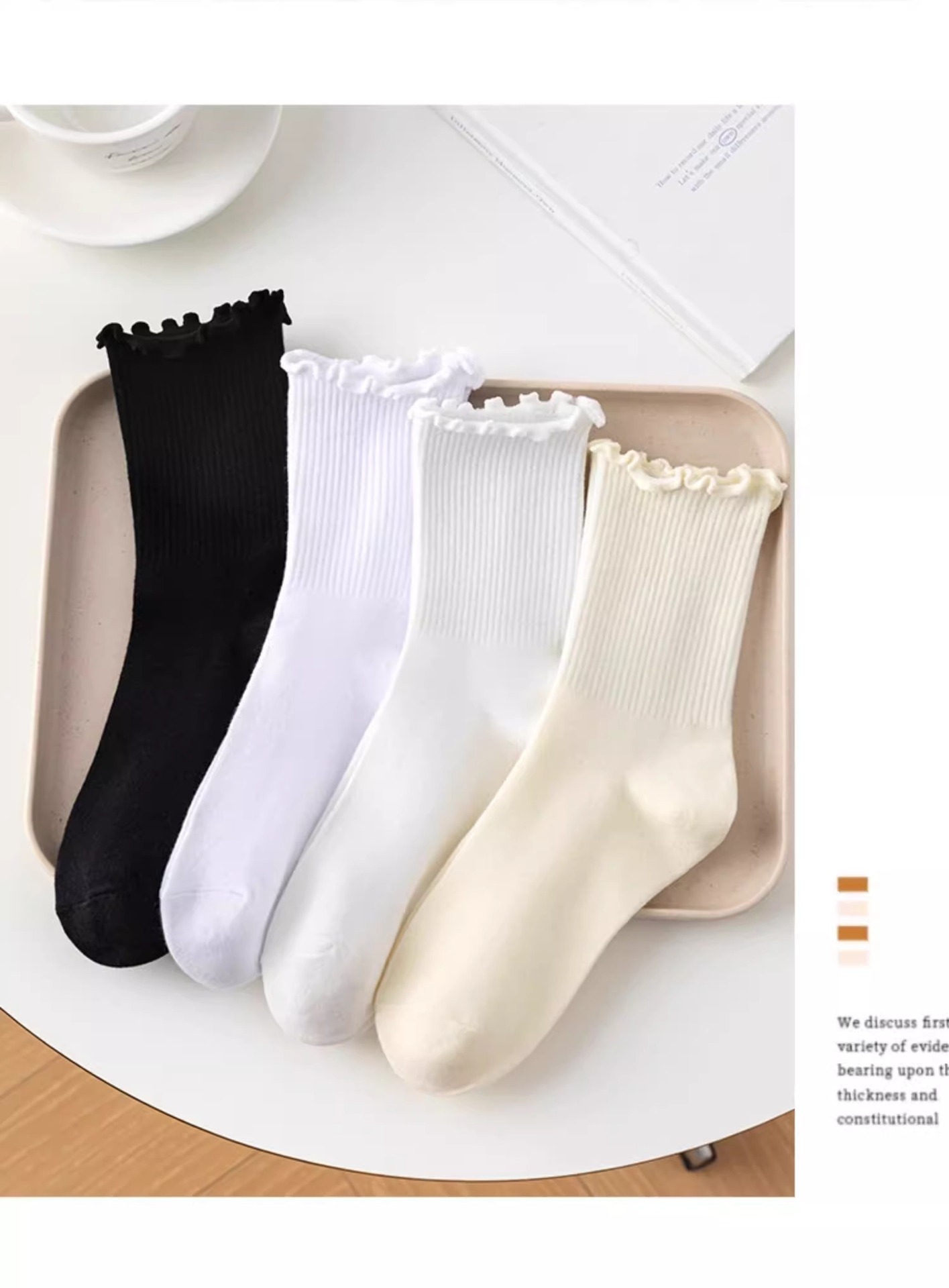 women's socks spring and summer thin wooden ear lace middle tube cotton socks black and white milky white bunching socks japanese style all-matching stockings