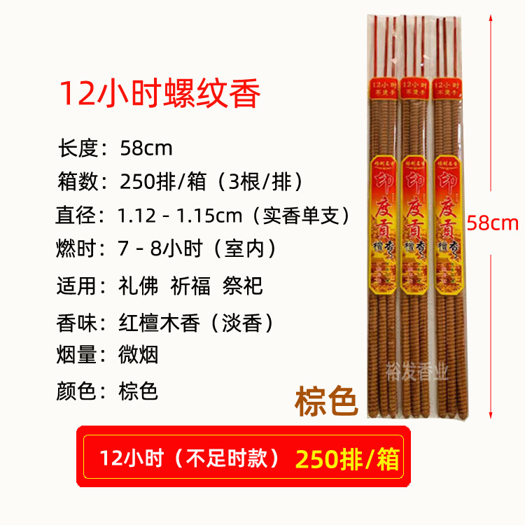 12-hour indian agarwood incense with little smoke when insufficient (maple, 58 cm, 250 pieces per box)