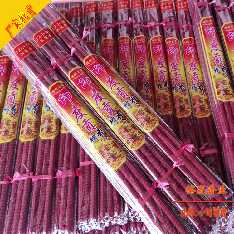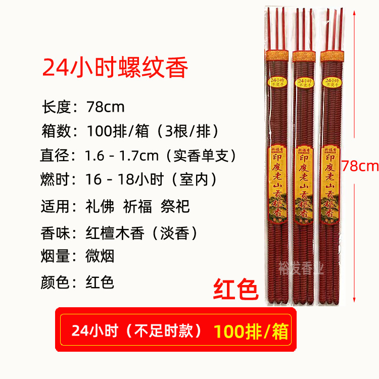 24-hour indian sandalwood incense sticks, low smoke (red, 78 cm; order in multiples of 100 pieces per box)