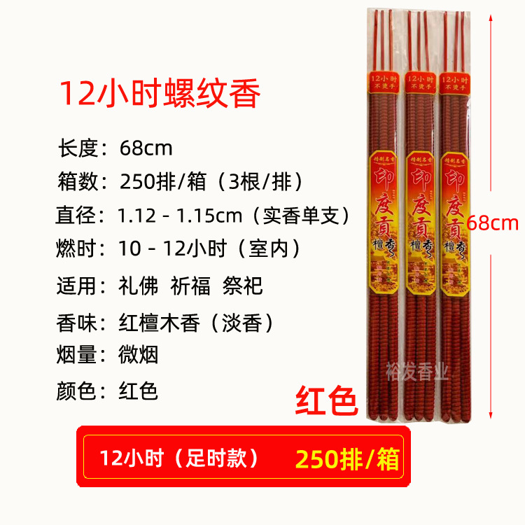 12-hour indian sandalwood low-smoke full-size incense sticks (red, 68 cm; order in multiples of 250 sticks per box)