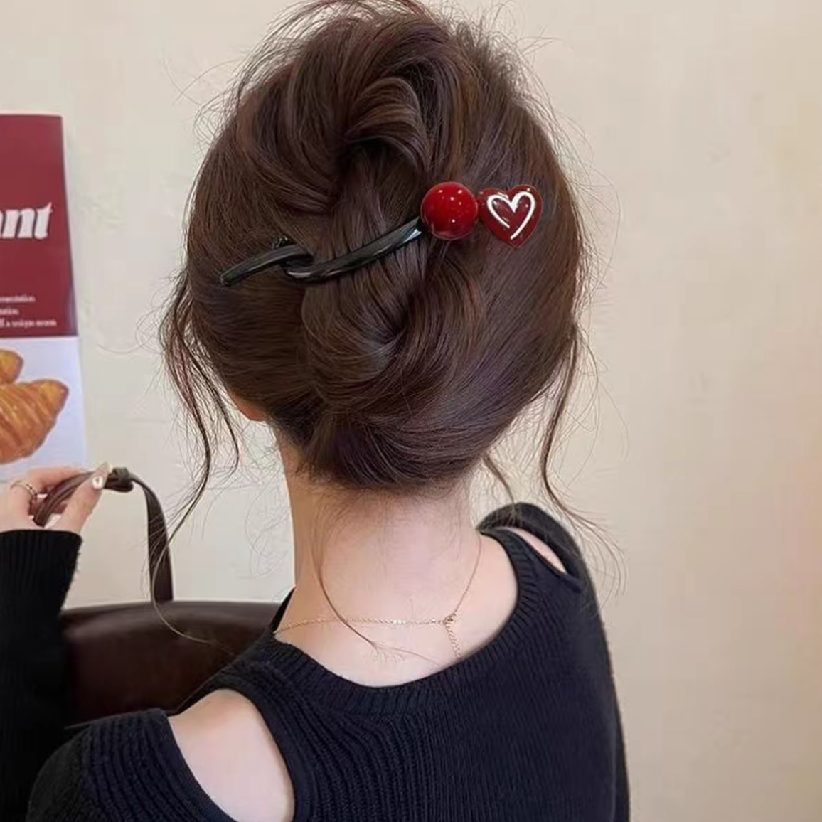 2# wine red heart-shaped banana clip
