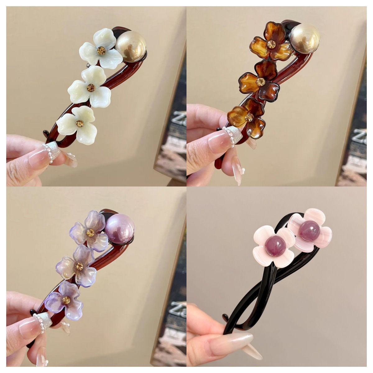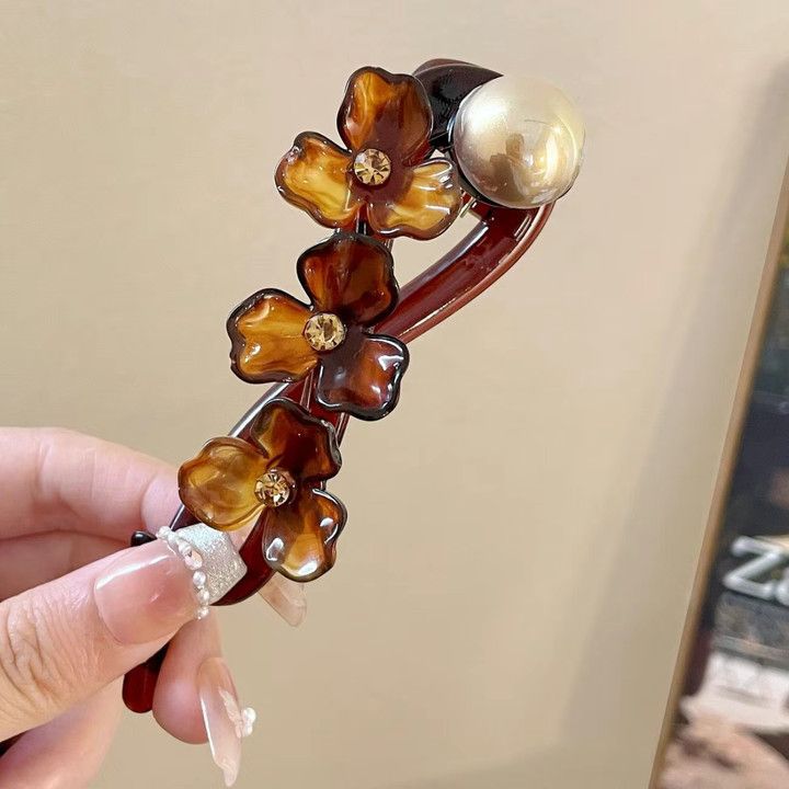 9# coffee-colored flower banana clip
