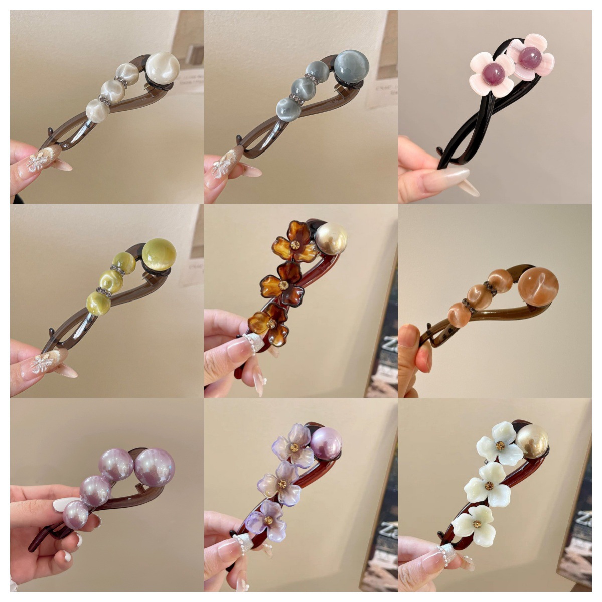 1# [tea black] pearl banana clip