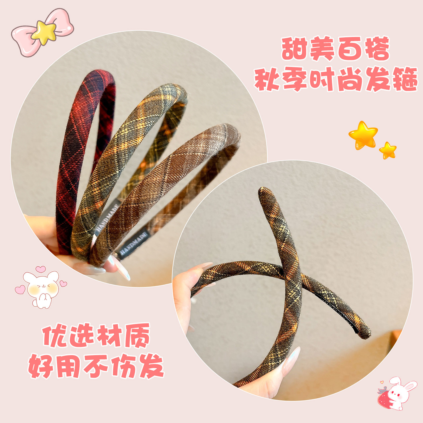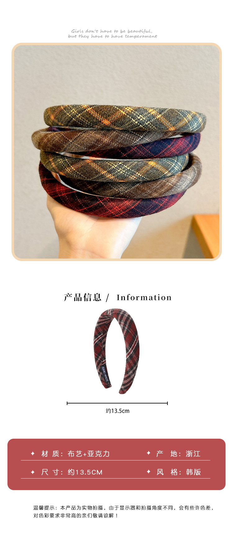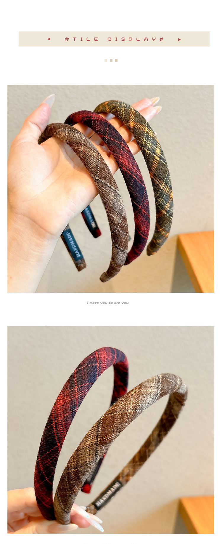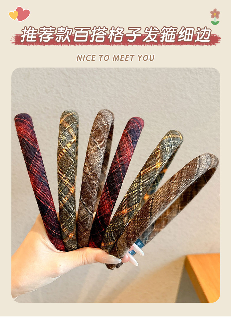 3# brown plaid hairband with thin edges-about 2cm