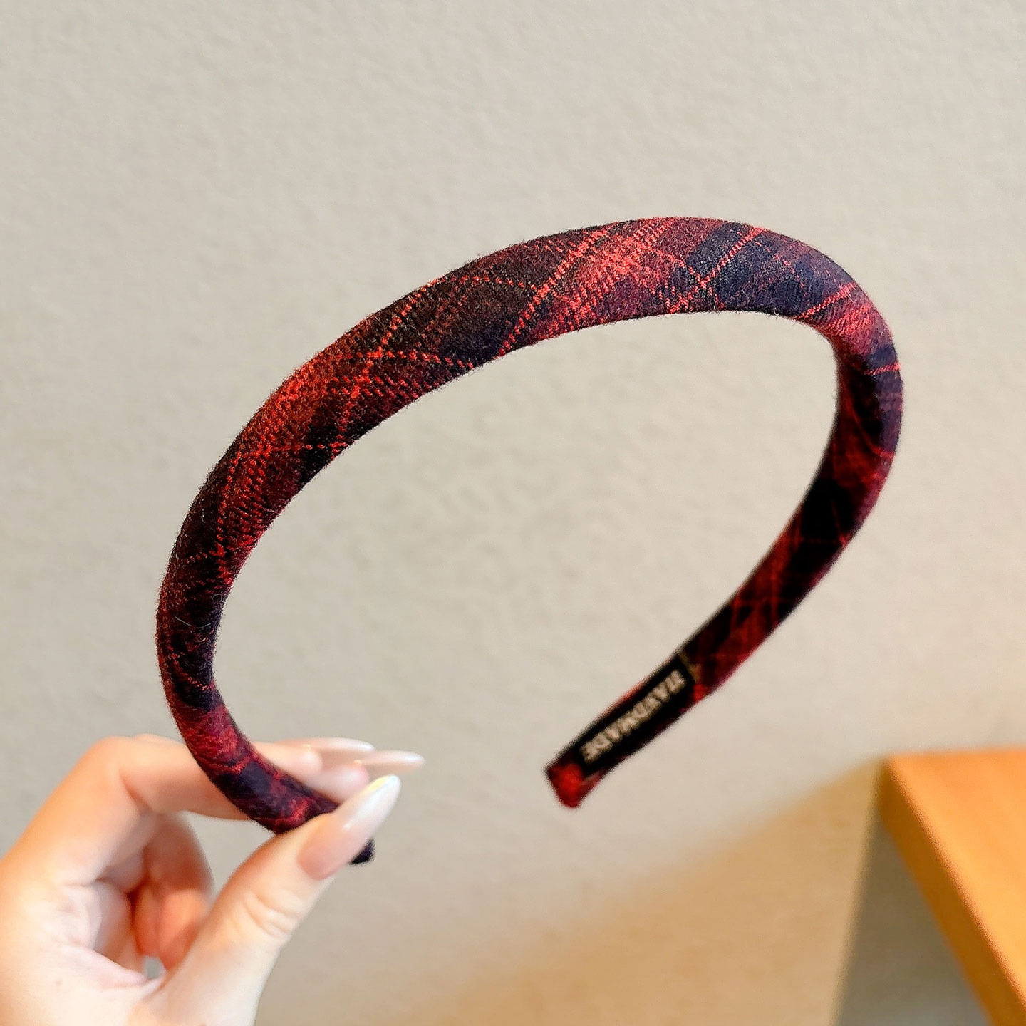 2# red plaid hairband with thin edges-about 2cm