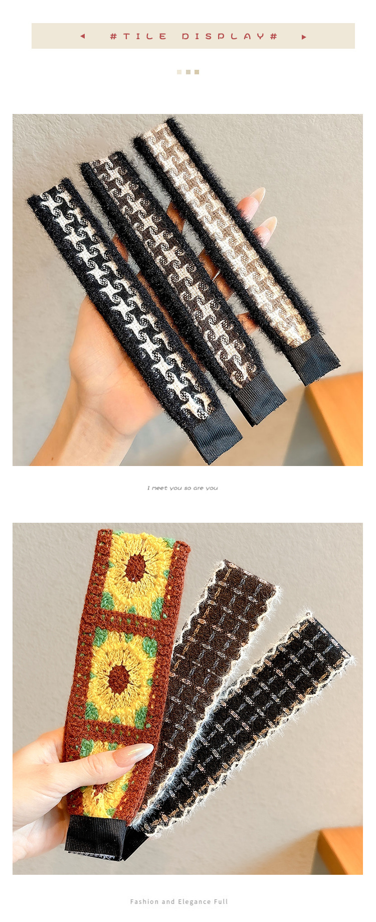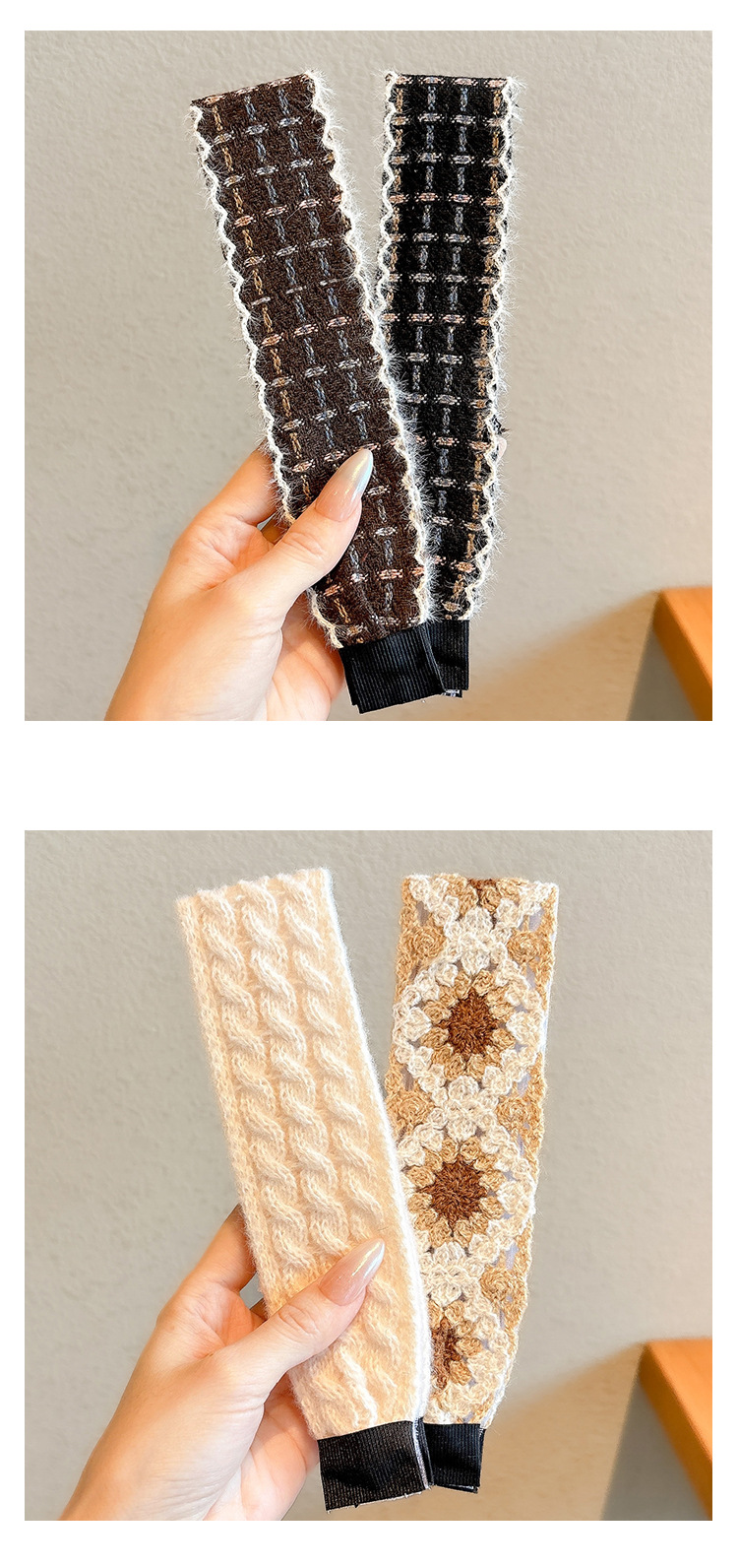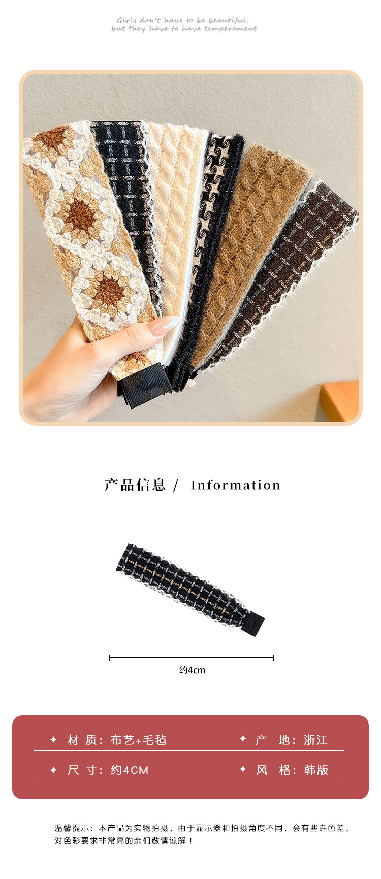 style 7: coffee-colored plaid with lace trim, approximately 4cm wide and 36cm long.