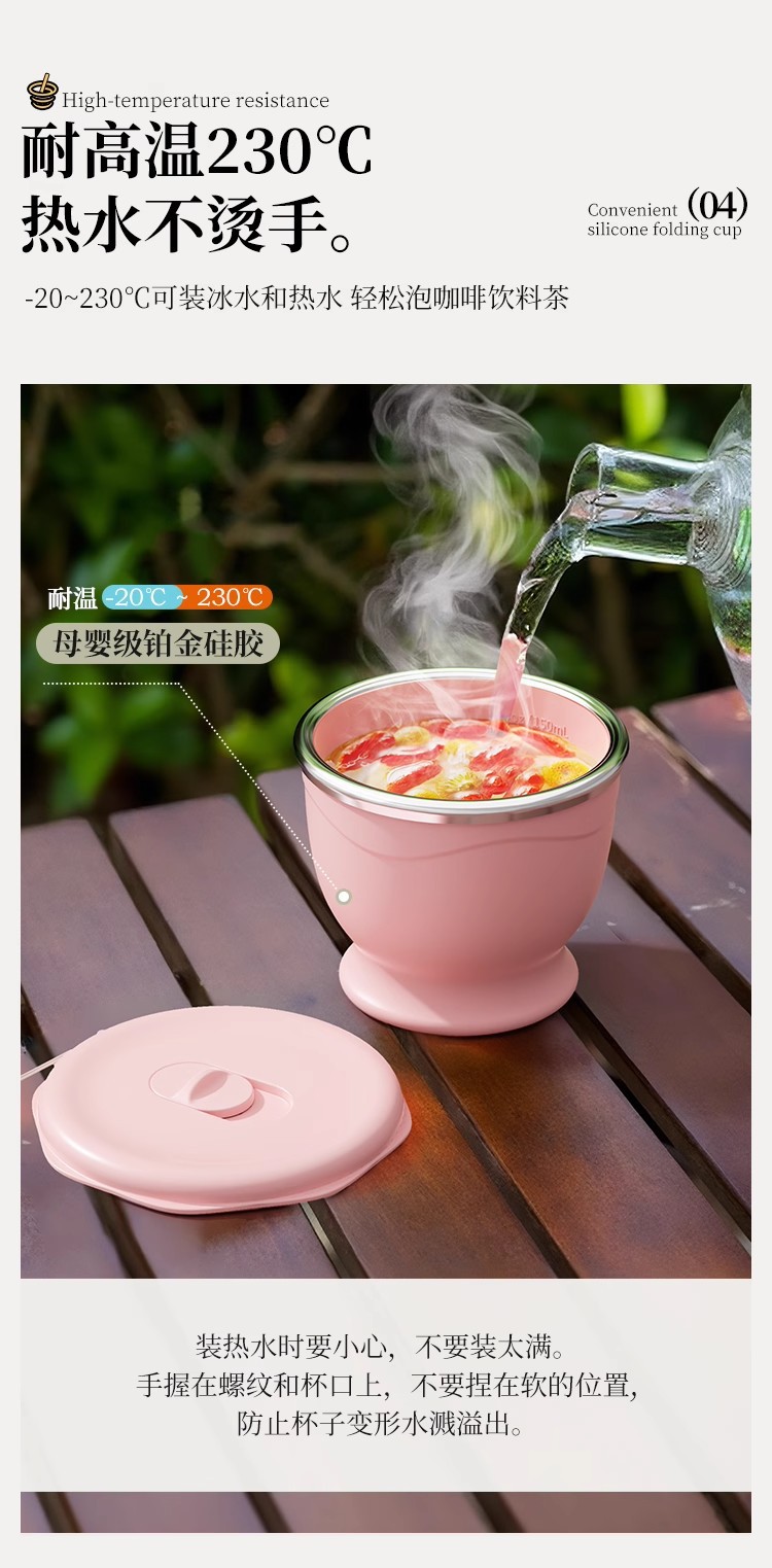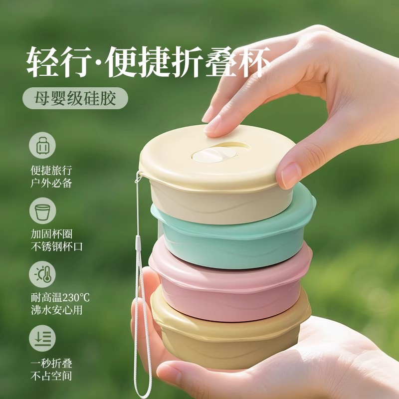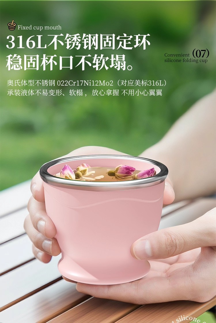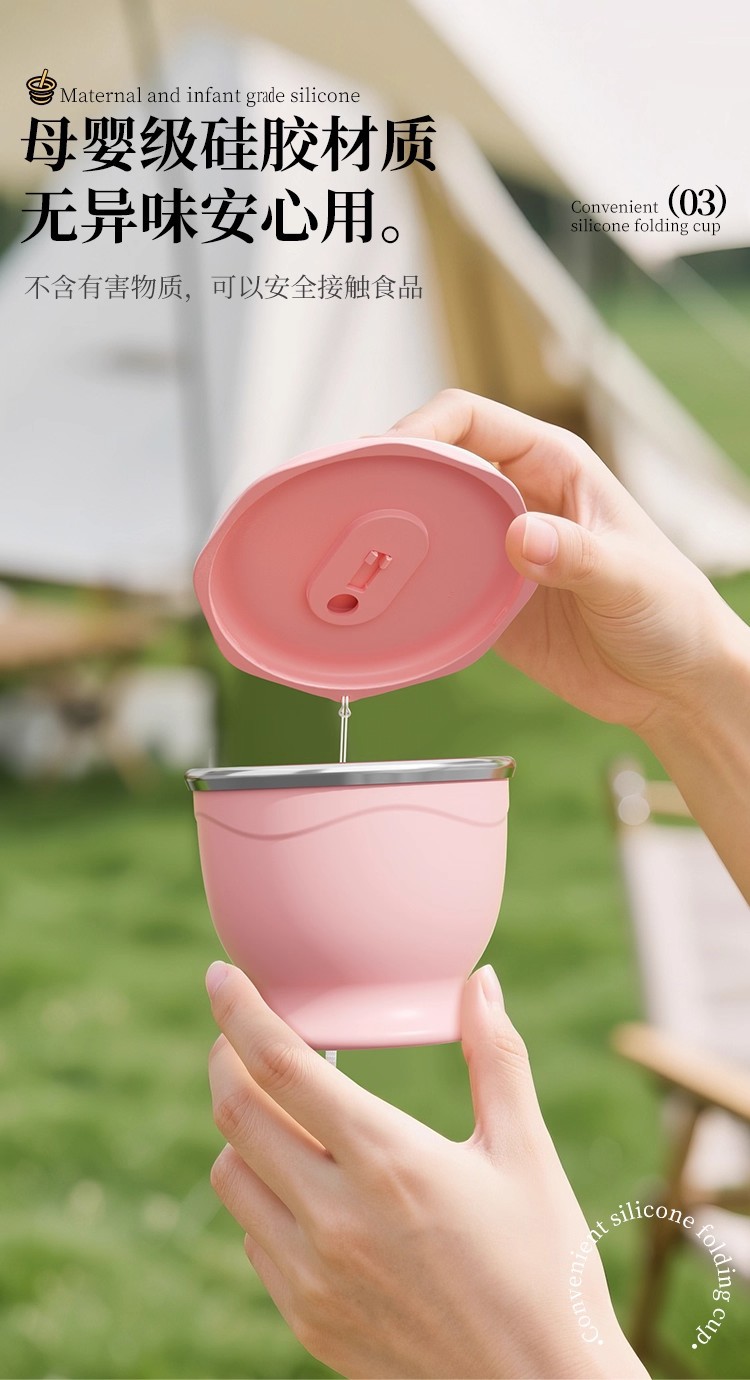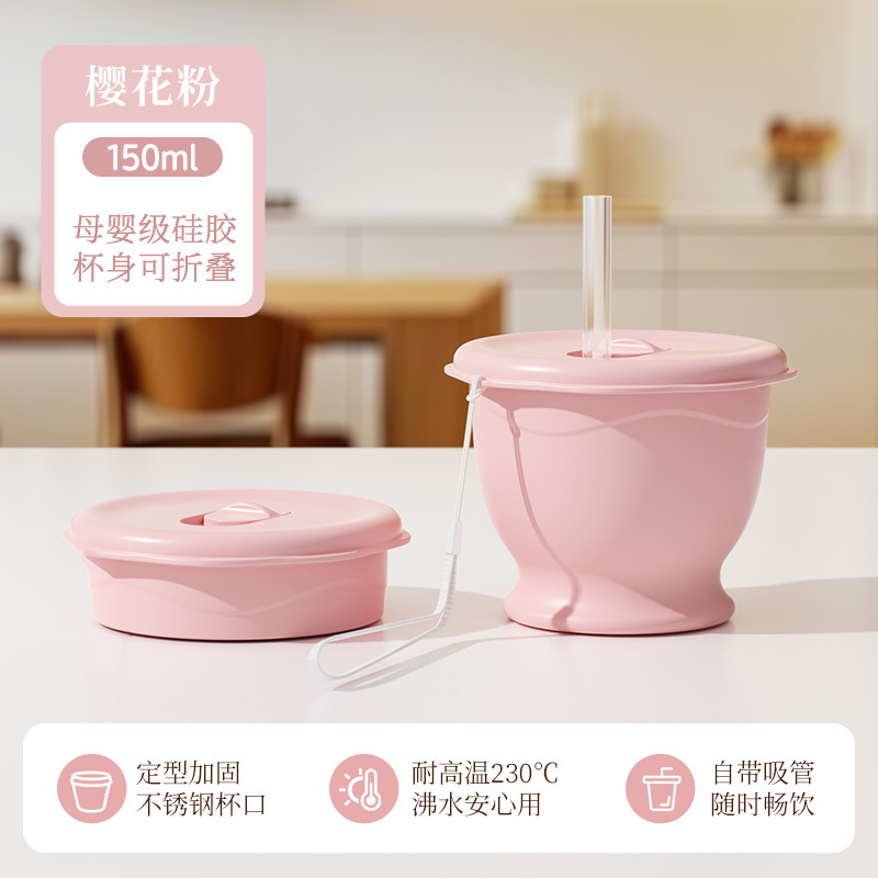 cherry blossom pink 150ml (maternal and infant grade silicone) mini pocket cup + straw + rope holding