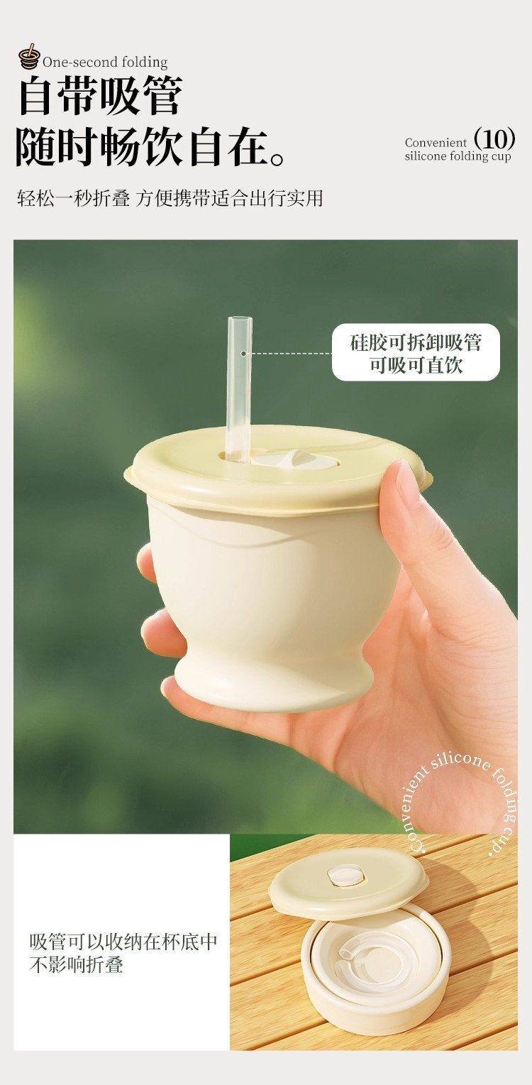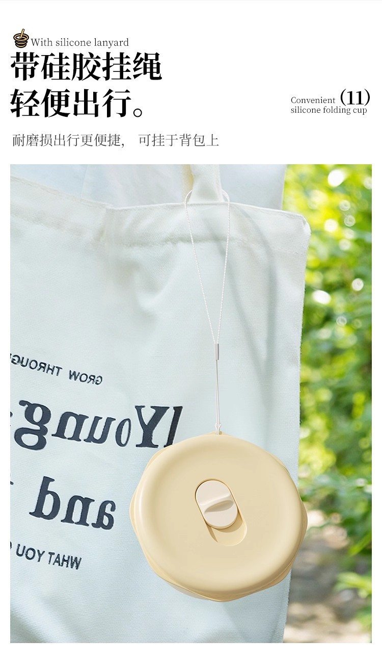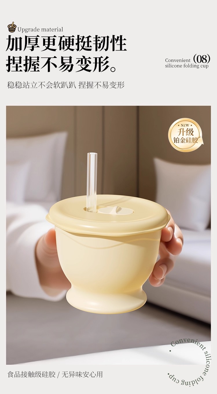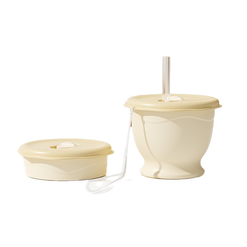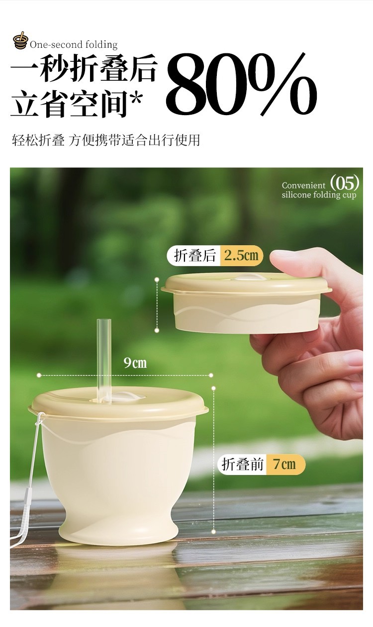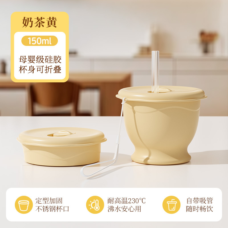 cream yellow 150ml (maternal and infant grade silicone) mini pocket cup + straw + rope holding