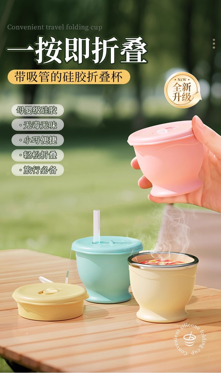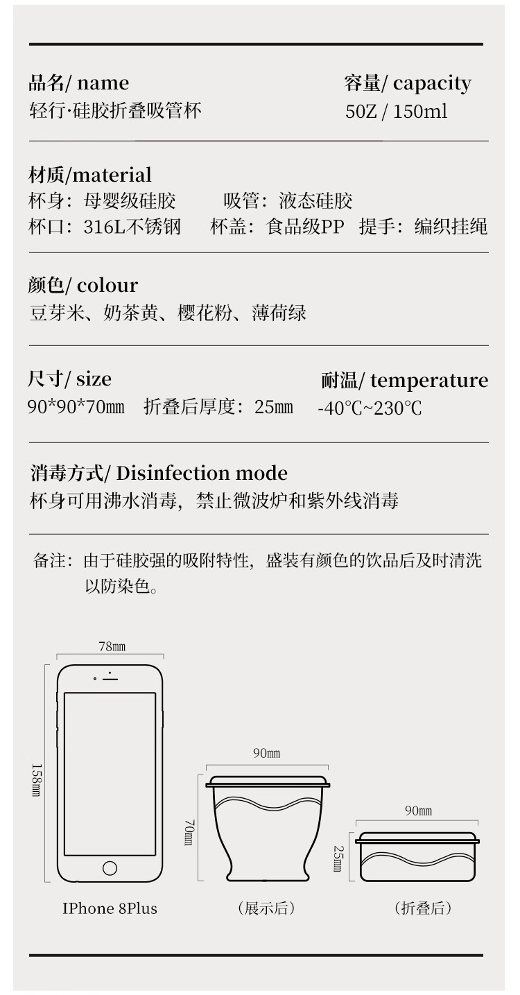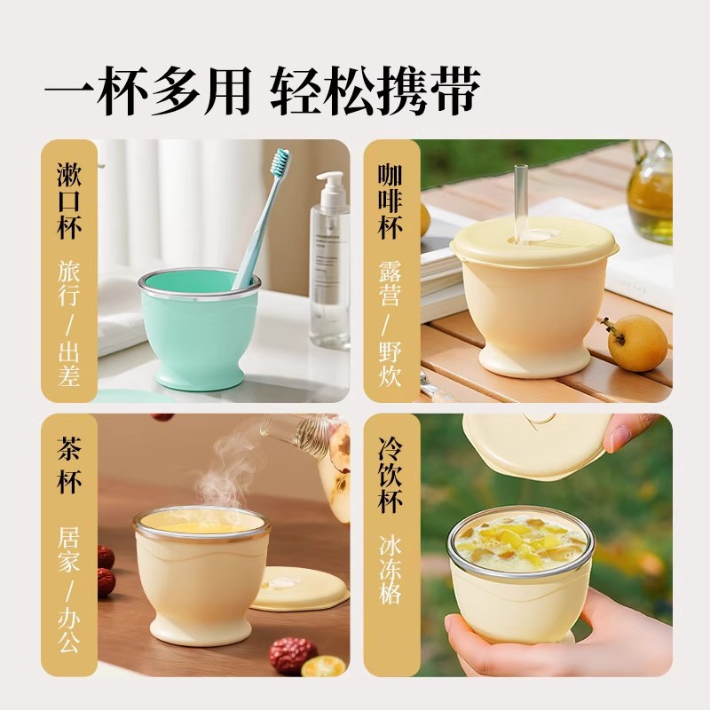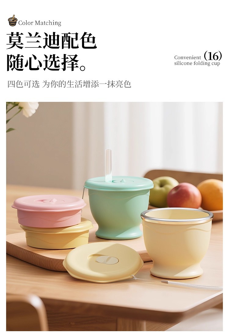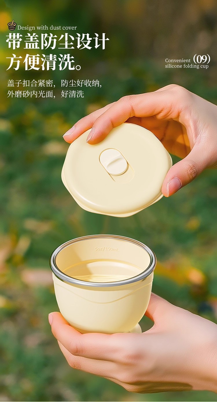 cream yellow 150ml (maternal and infant grade silicone) mini pocket cup + straw + rope holding