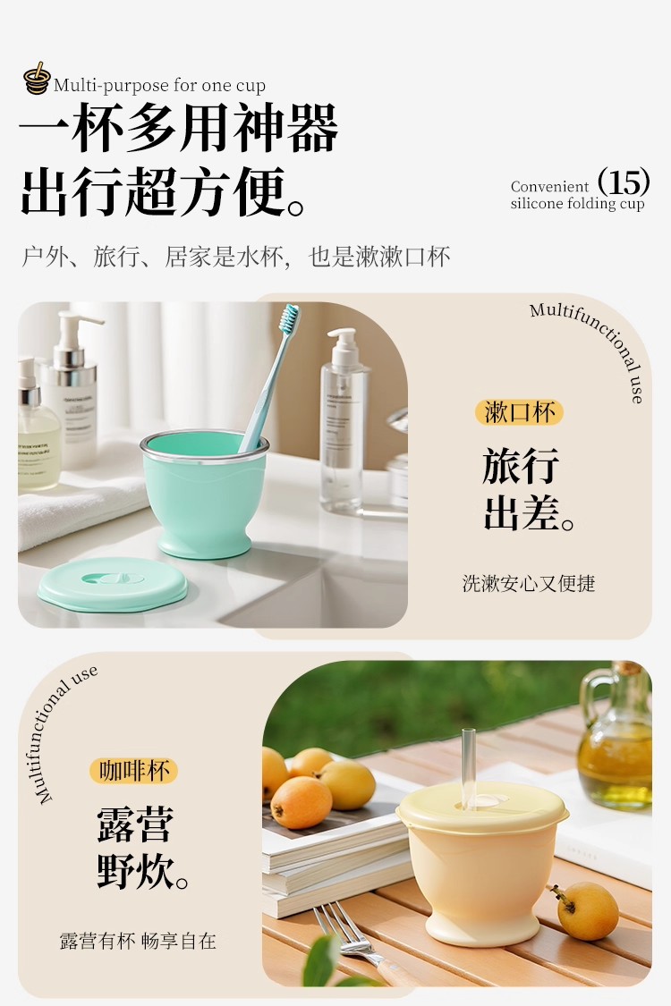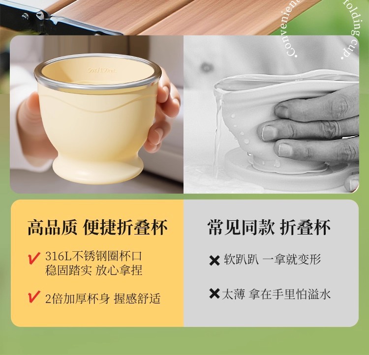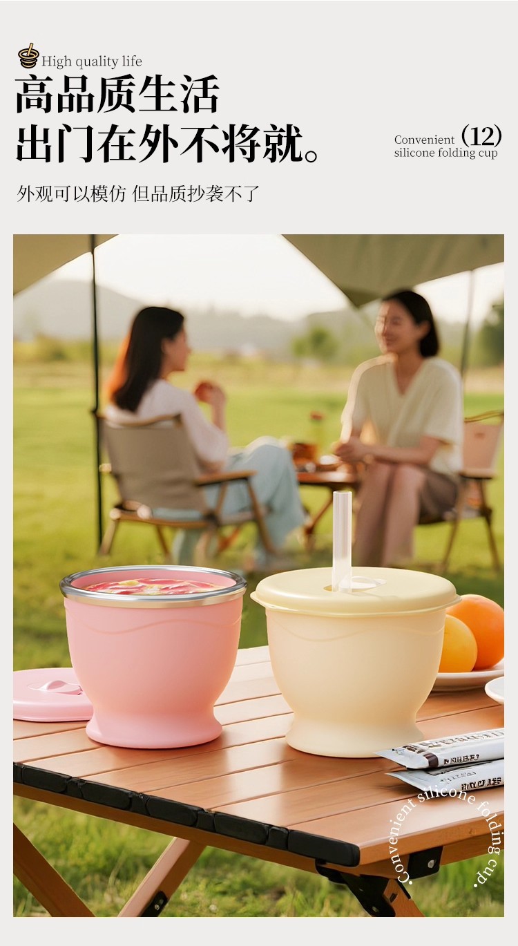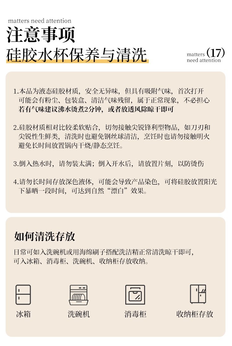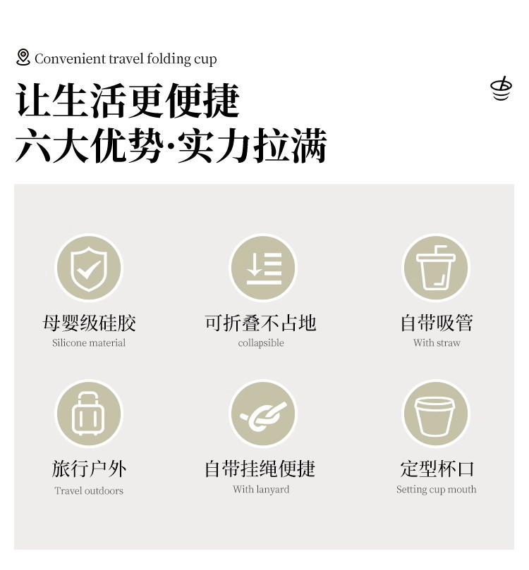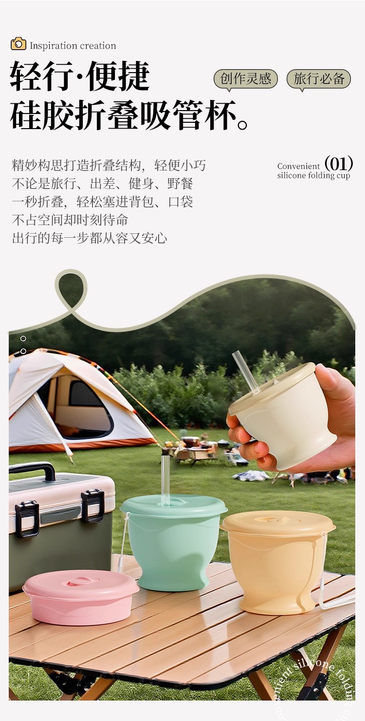 cream yellow 150ml (maternal and infant grade silicone) mini pocket cup + straw + rope holding