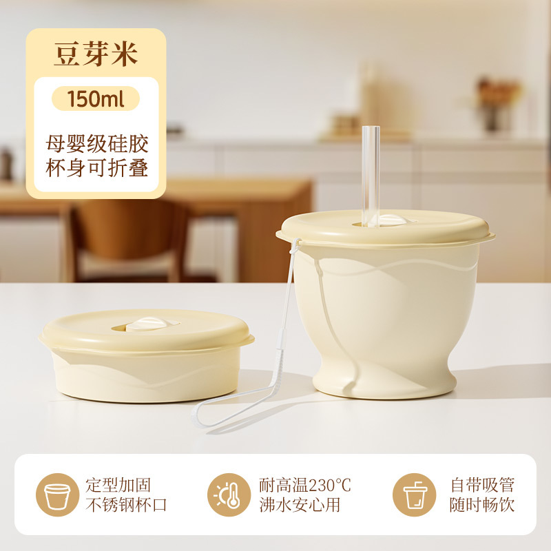 bean sprout rice 150ml (maternal and infant grade silicone) mini pocket cup + straw + rope holding