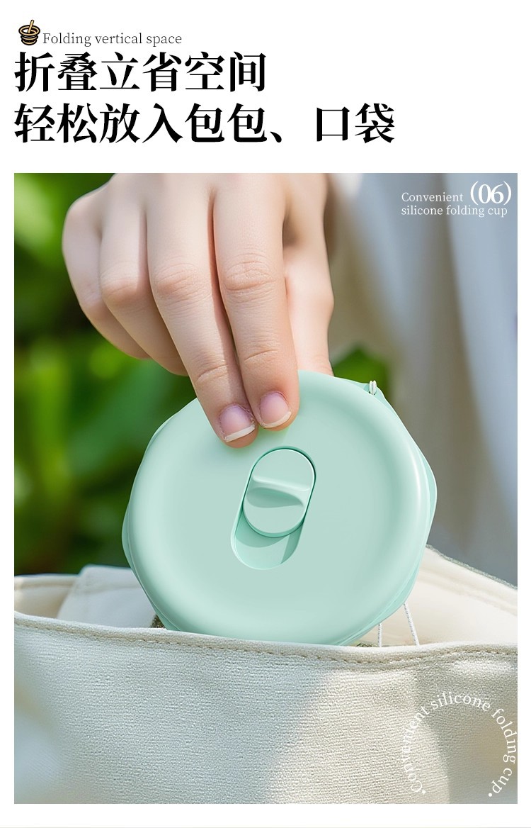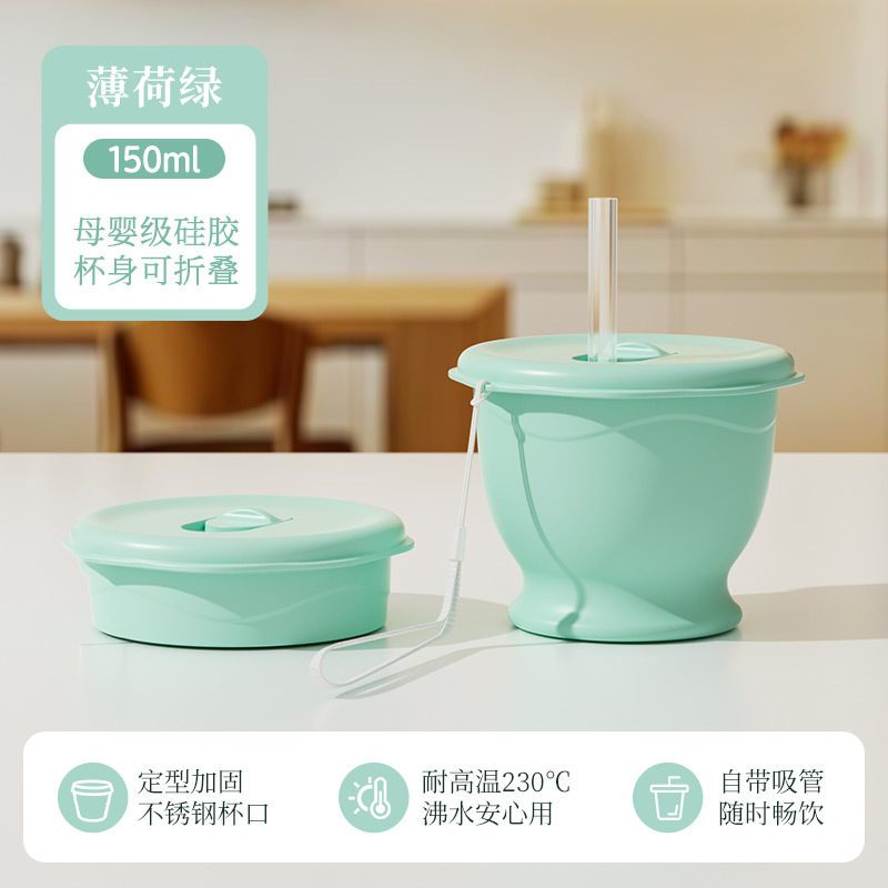 mint green 150ml (maternal and infant grade silicone) mini pocket cup + straw + rope holding