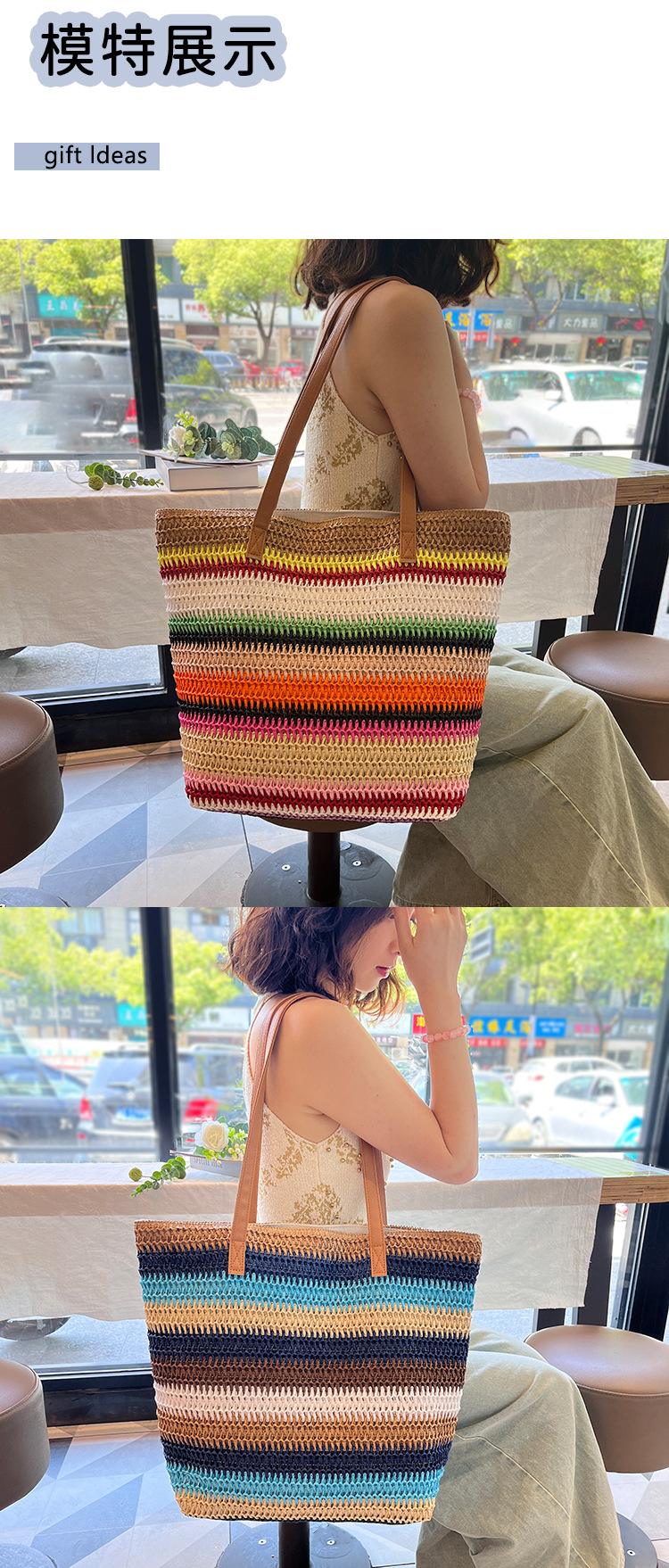 popular elements: straw, contrast color, macaron color