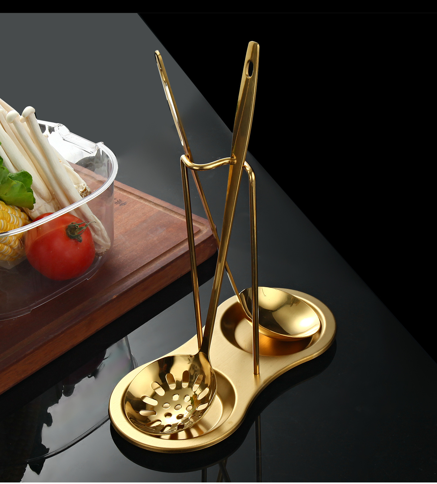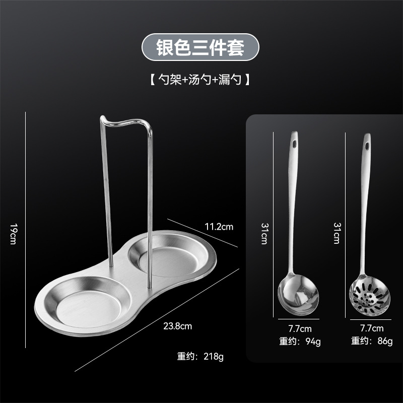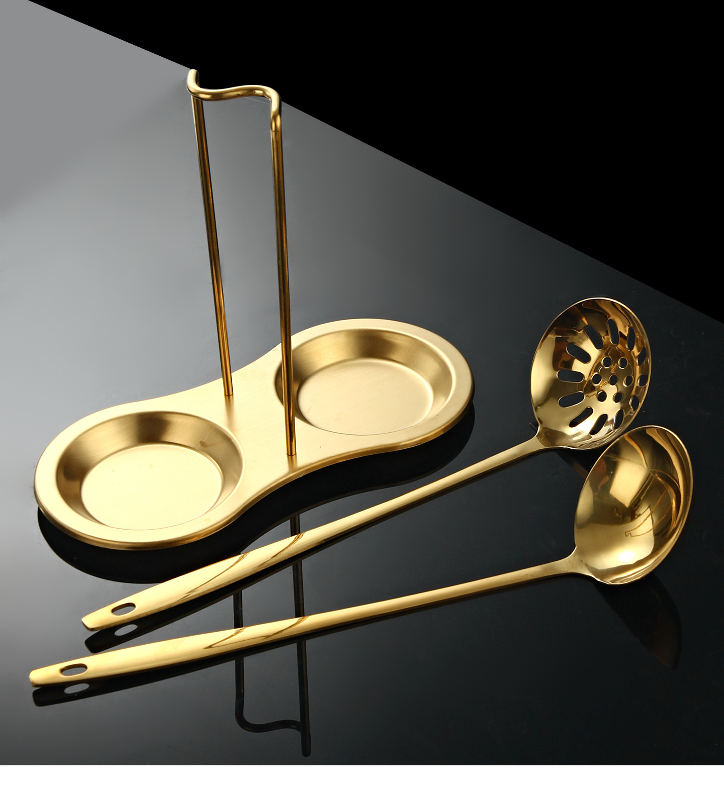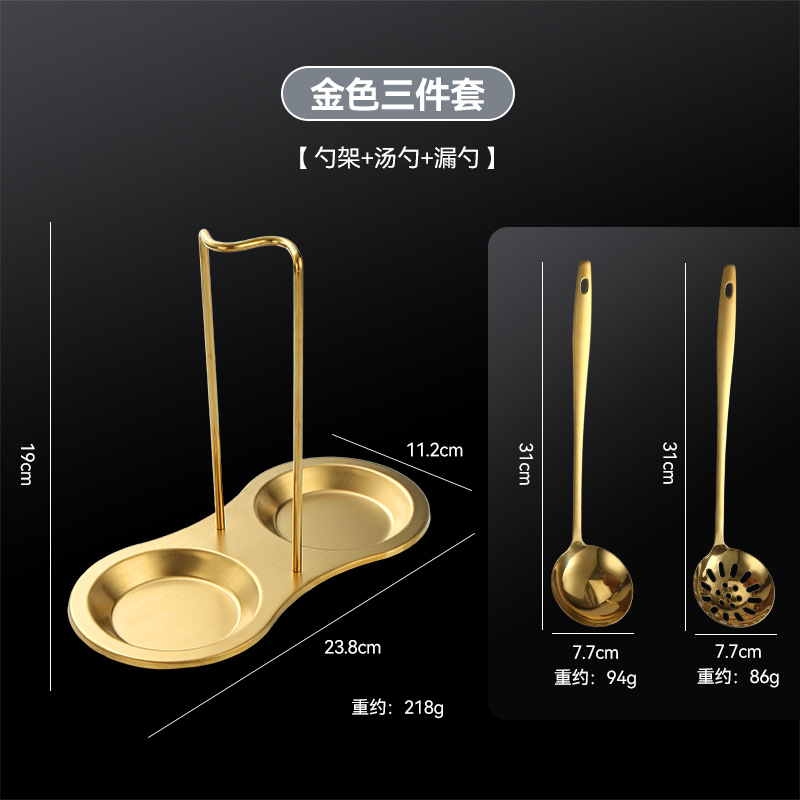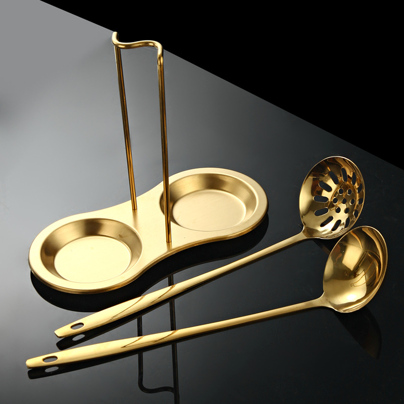 golden-spoon holder + soup spoon + colander