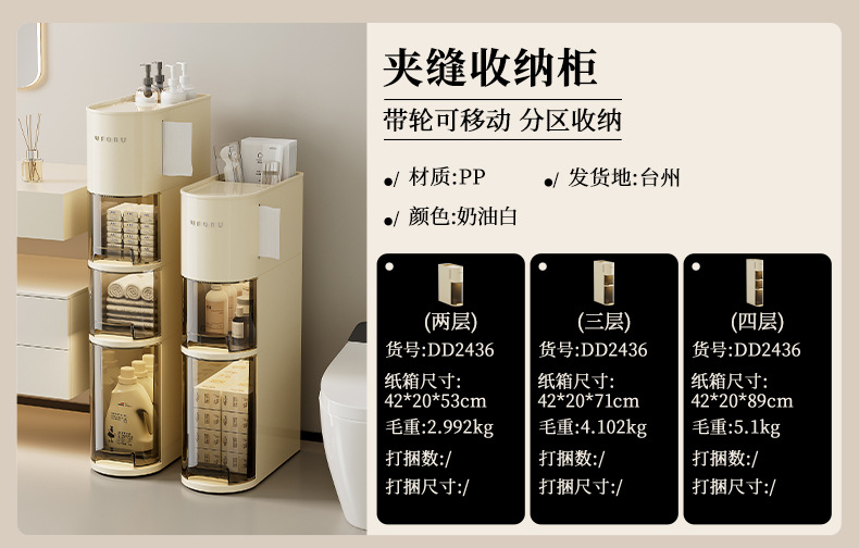 crevice storage cabinet (four tiers)-cream white