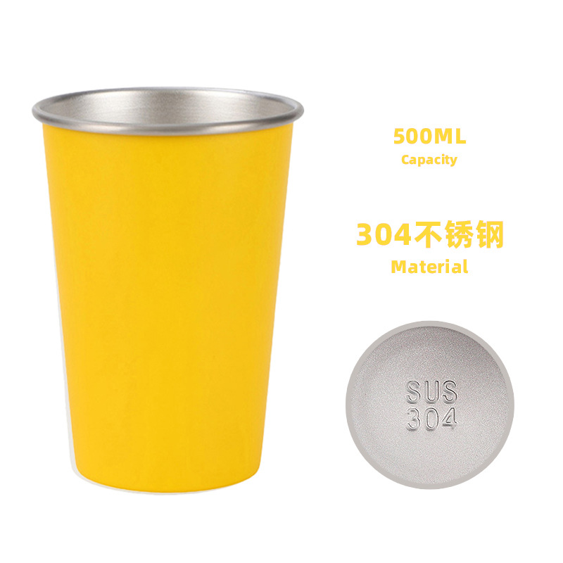 500ml plastic spray yellow beer steins (304 steel seal)