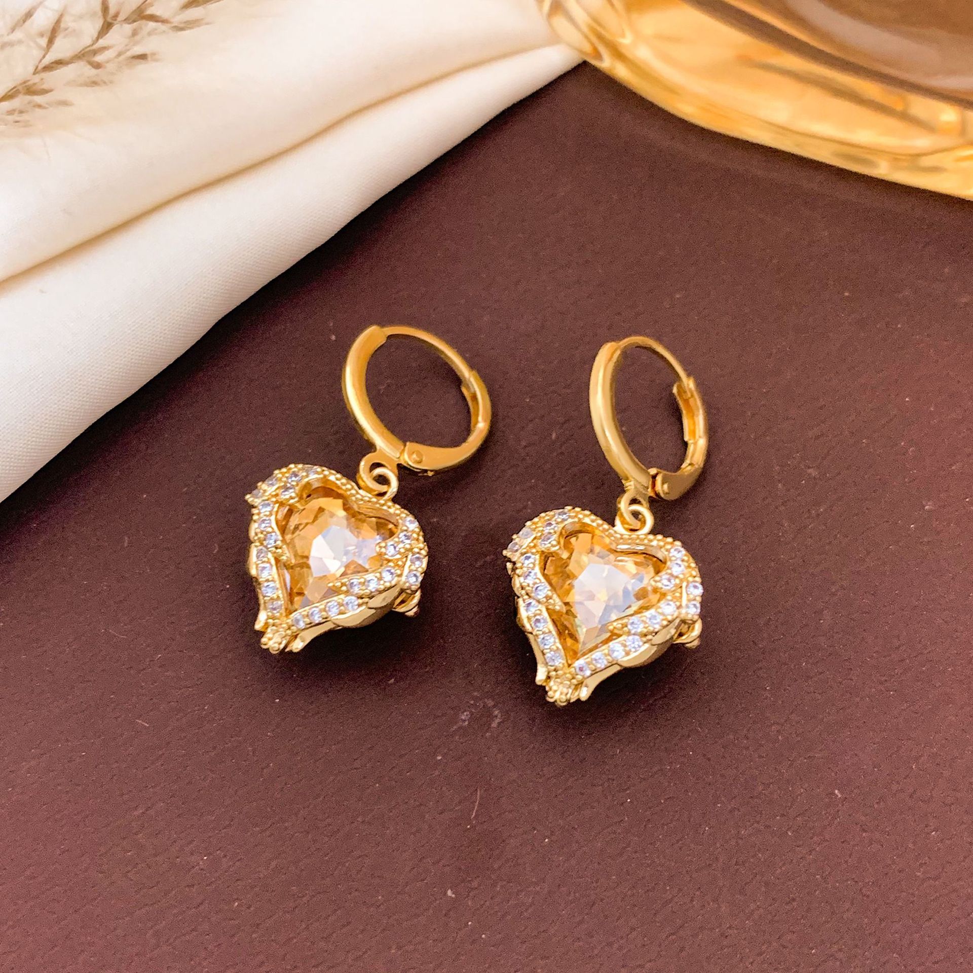 ED497香槟黄爱心耳扣金色