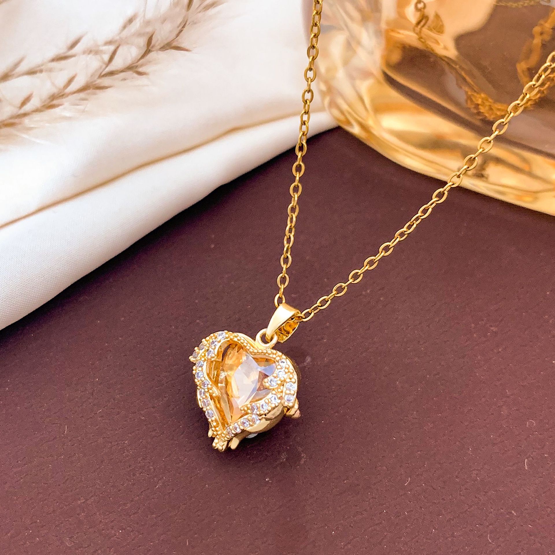 XL138香槟黄爱心项链金色
