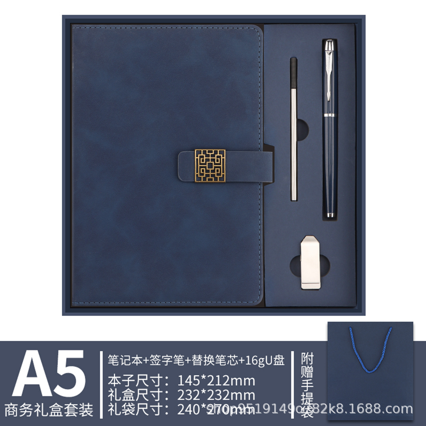 a5-deep blue-usb flash drive gift set