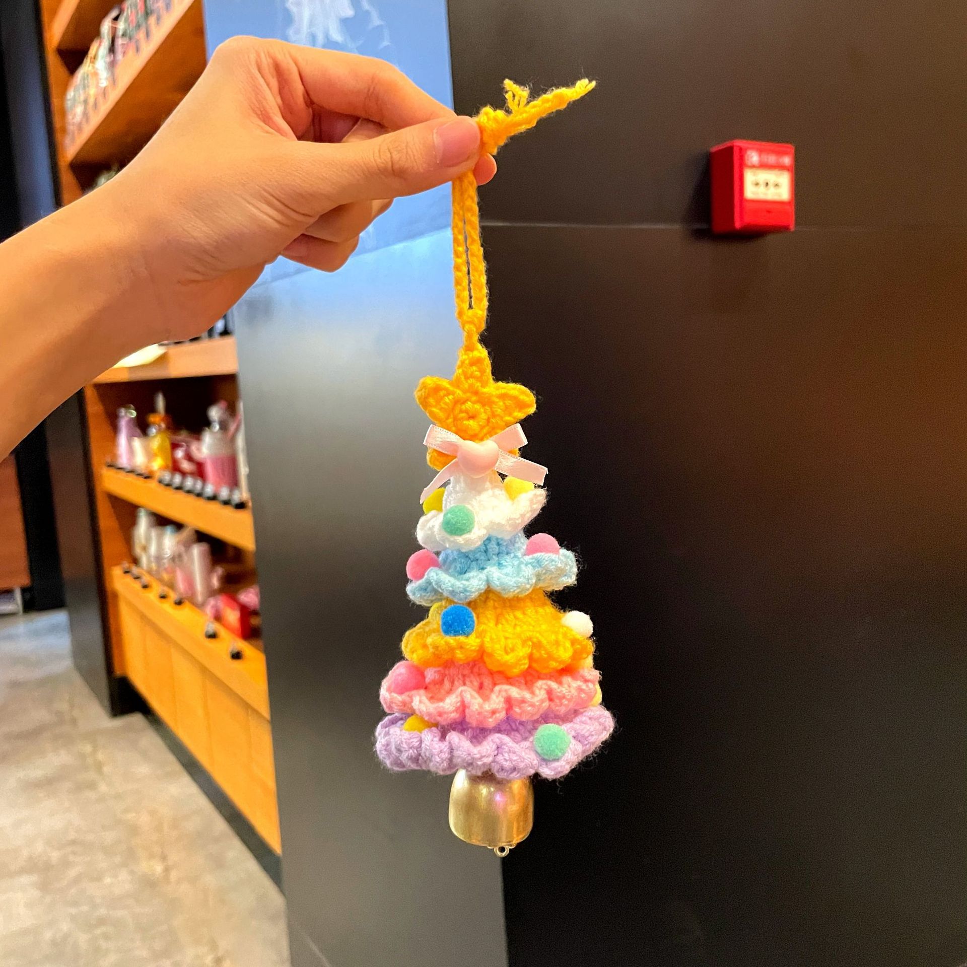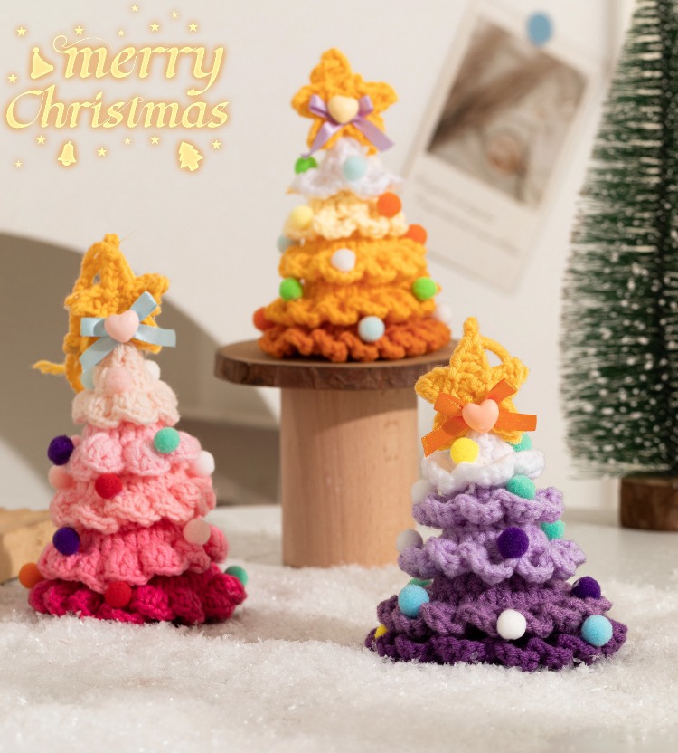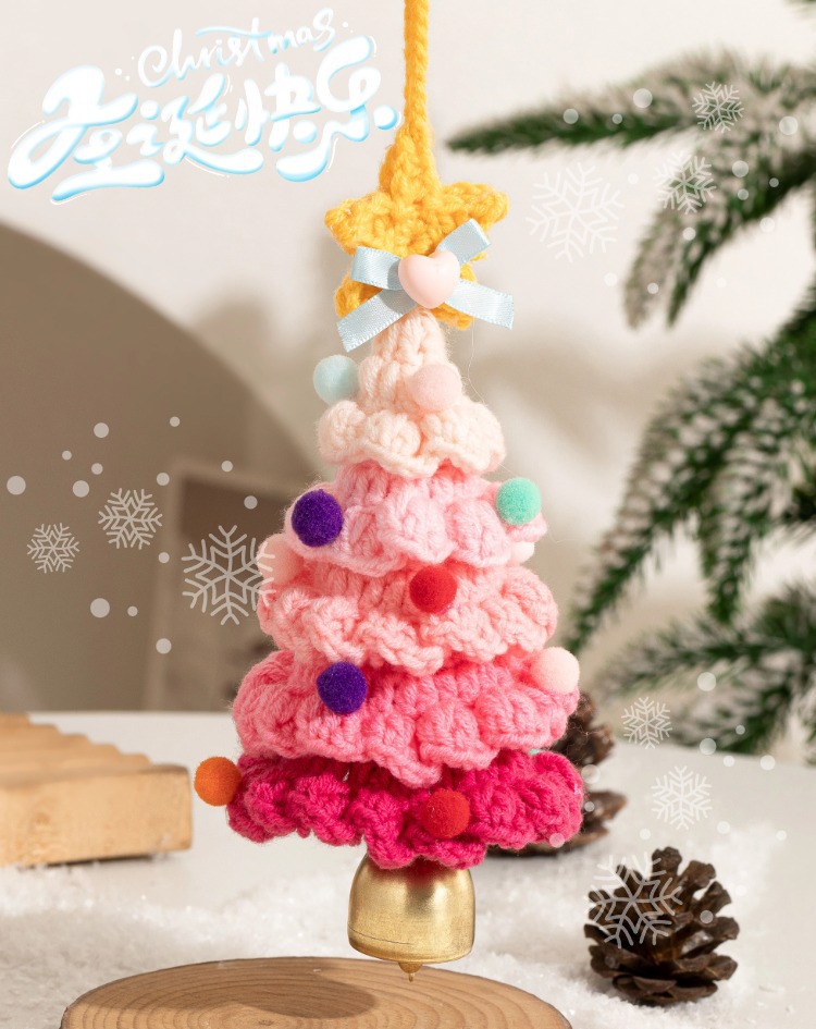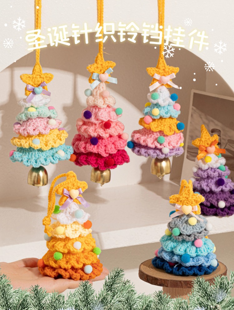 yarn-knitted colorful christmas tree bell pendant, style c