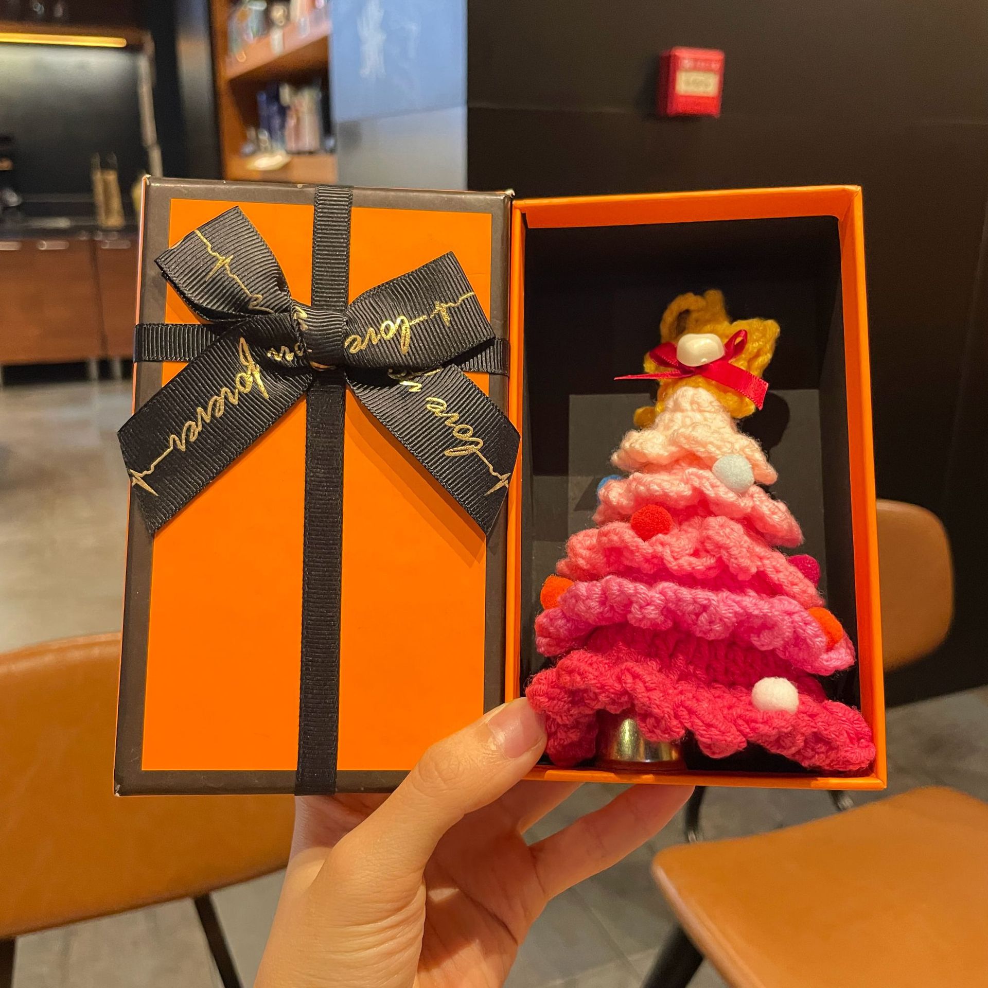 wool woven colorful christmas tree bell pendant f + orange gift box + gift bag